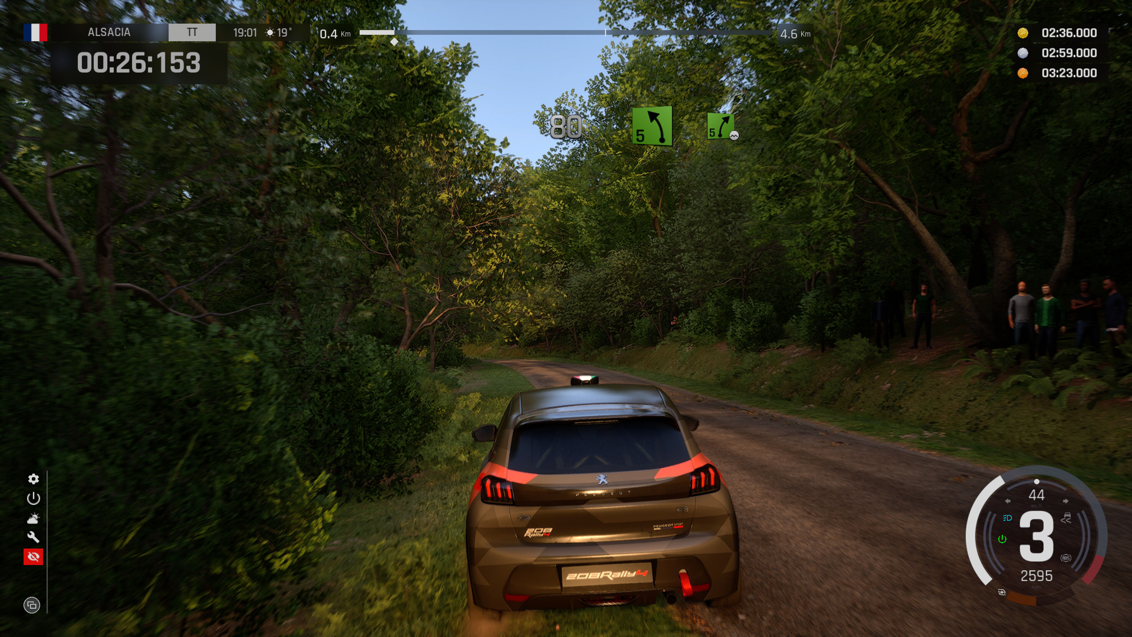 Visualmente, el juego es un salto muy perceptible respecto a Competizione. El nuevo motor gráfico brilla en iluminación, detalle y escala. Los tramos están construidos con tecnología láser y modelados con un nivel de fidelidad sorprendente: carreteras que serpentean entre bosques, zonas de montaña con pequeños edificios o detalles como espectadores que se retiran cuando te ven venir.