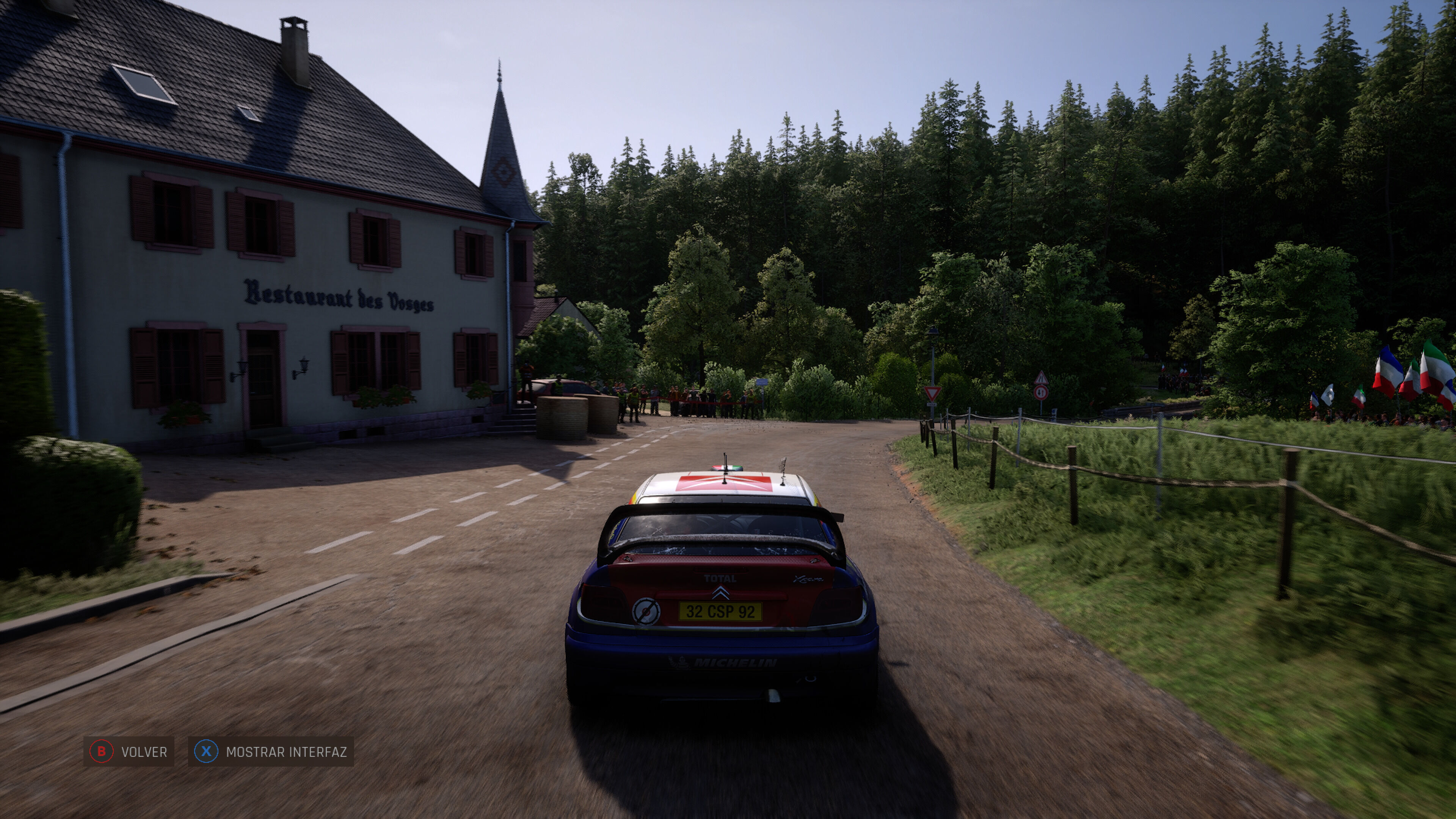 El rendimiento también acompaña. Incluso en esta fase inicial, el juego se mantiene estable y fluido, y creemos que no lo hemos visto bajar de las 90 imágenes por segundo en ningún momento con el equipo que veis bajo estas líneas, a 4K y con DLSS por defecto. Los sonidos, por su parte, son una delicia: motores, golpes, frenadas y el característico crujir de la grava se reproducen con un nivel de detalle que aporta inmersión total. Por supuesto, mención especial para el doblaje a nuestro idioma, que nos ayuda bastante a la hora de recibir instrucciones de nuestro copiloto.