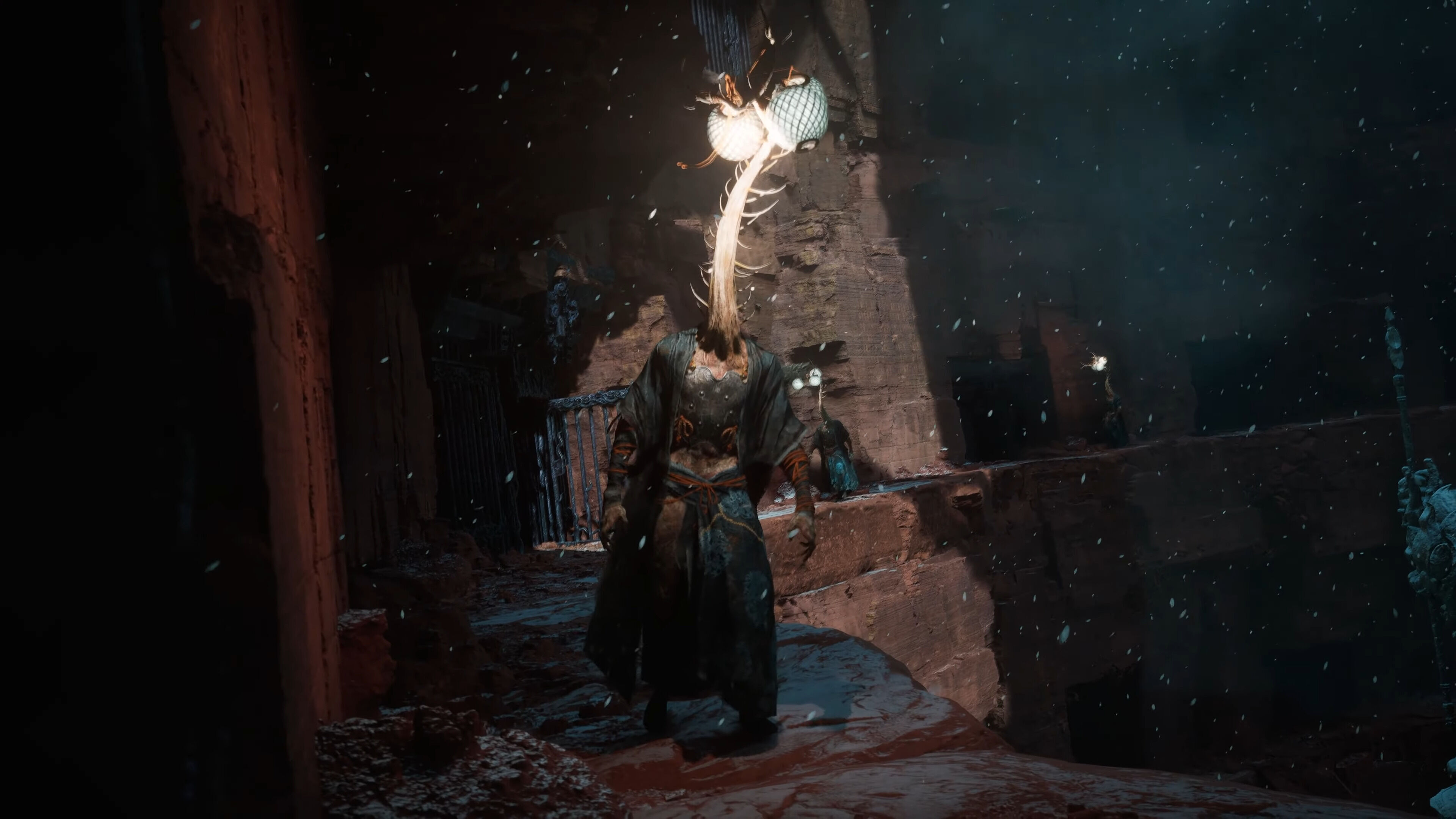 Nuestro personaje, el Rey Mono, puede transformarse en otras criaturas durante los combates, por ejemplo en un enorme y poderoso lobo, que utiliza una espada de fuego, o en un hombre gusano, que utiliza ataques venenosos. A diferencia de otros Soulslike, en los que podemos equipar diferentes armas, aquí siempre luchamos con el bastón, siendo la manera de blandir otras armas mediante las transformaciones, lo que junto a las posturas y las magias promete un sistema de combate muy complejo y profundo, con muchas posibilidades. La manera de curarnos bebiendo de la calabaza también recuerda a los frascos de Estus de Dark Souls.