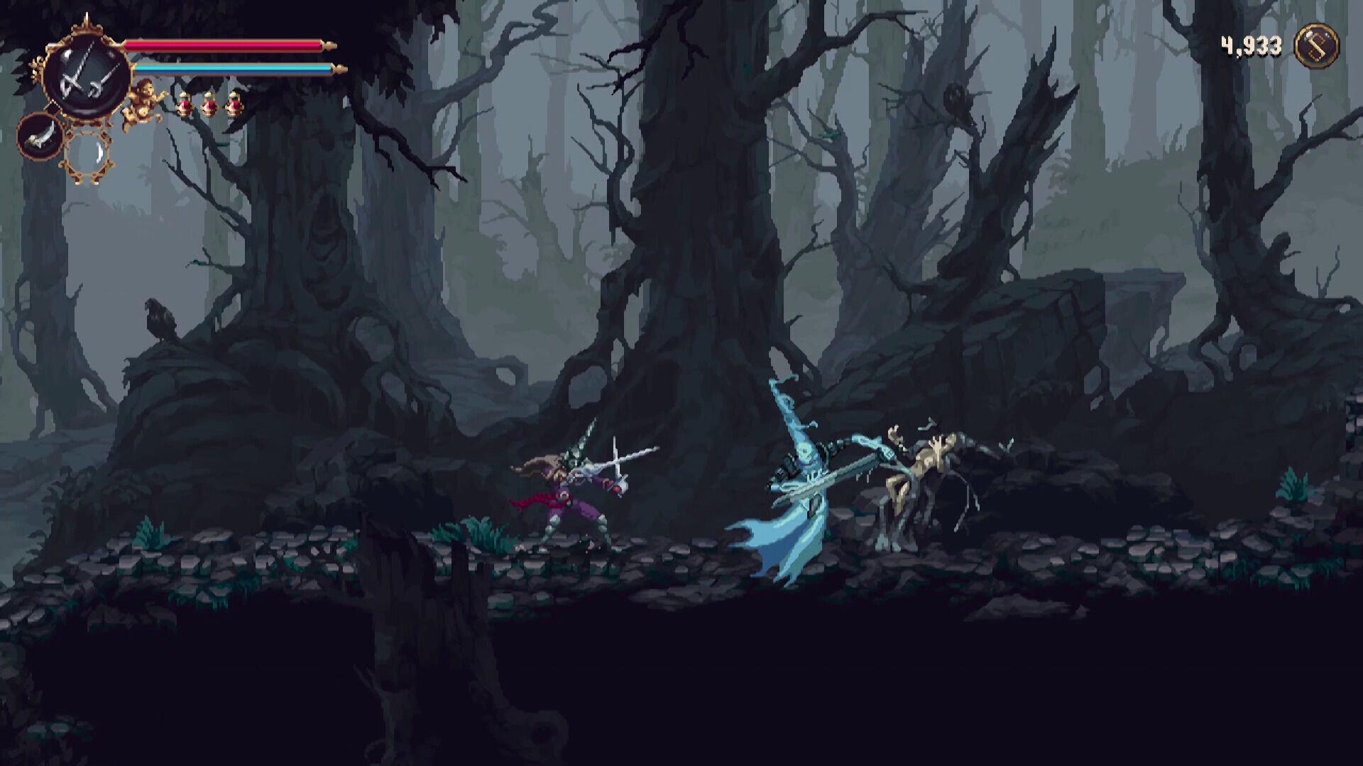 Posteriormente podremos conseguir el resto de armas, descubriendo que cada una de ellas despliega una serie de dinámicas que refrescan el estilo de juego: si con las espadas duales estamos todo el tiempo saltando y deslizándonos, tratando de acuchillar a los enemigos por la espalda, con la maza podremos jugar de una forma más lenta pero implacable, midiendo bien los píxeles de daño para asestar un golpe potente a nuestro enemigo.