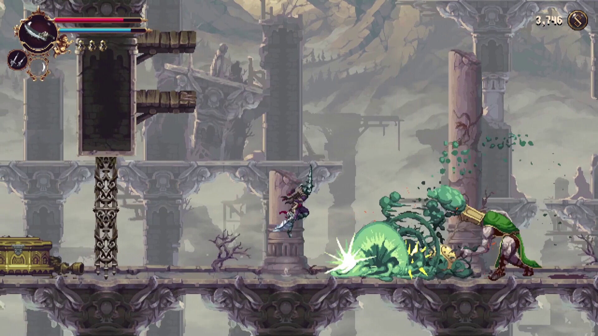Todo este set de novedades y refinamientos obedece a la intención de conseguir que Blasphemous 2 explore todavía más a fondo la estructura metroidvania que someramente se presentó en el primero; si aquel era un Souls en pixel art, aquí se ha apostado por abrazar un diseño más abierto, de escenarios interactivos y diseño más variado. Enrique Colinet, level designer del juego, nos contó que las armas ahora son más "transversales" y se utilizan para salvar obstáculos, un aspecto clave en el nuevo acercamiento de esta secuela.