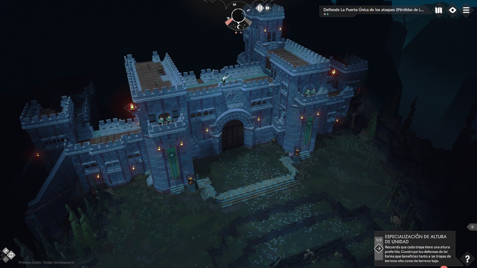 Aquí debemos tener en cuenta muchas cosas, como la posición de nuestras unidades tanto en horizontal como en vertical, así como la destrucción de las bases construidas, cuyas físicas pueden jugar a nuestro favor o en contra: si un enemigo rompe nuestra muralla, puede que una de las piedras le caiga encima y acabe con él, dándonos algo de ventaja y suavizando al mismo tiempo la pequeña derrota que hemos sufrido.