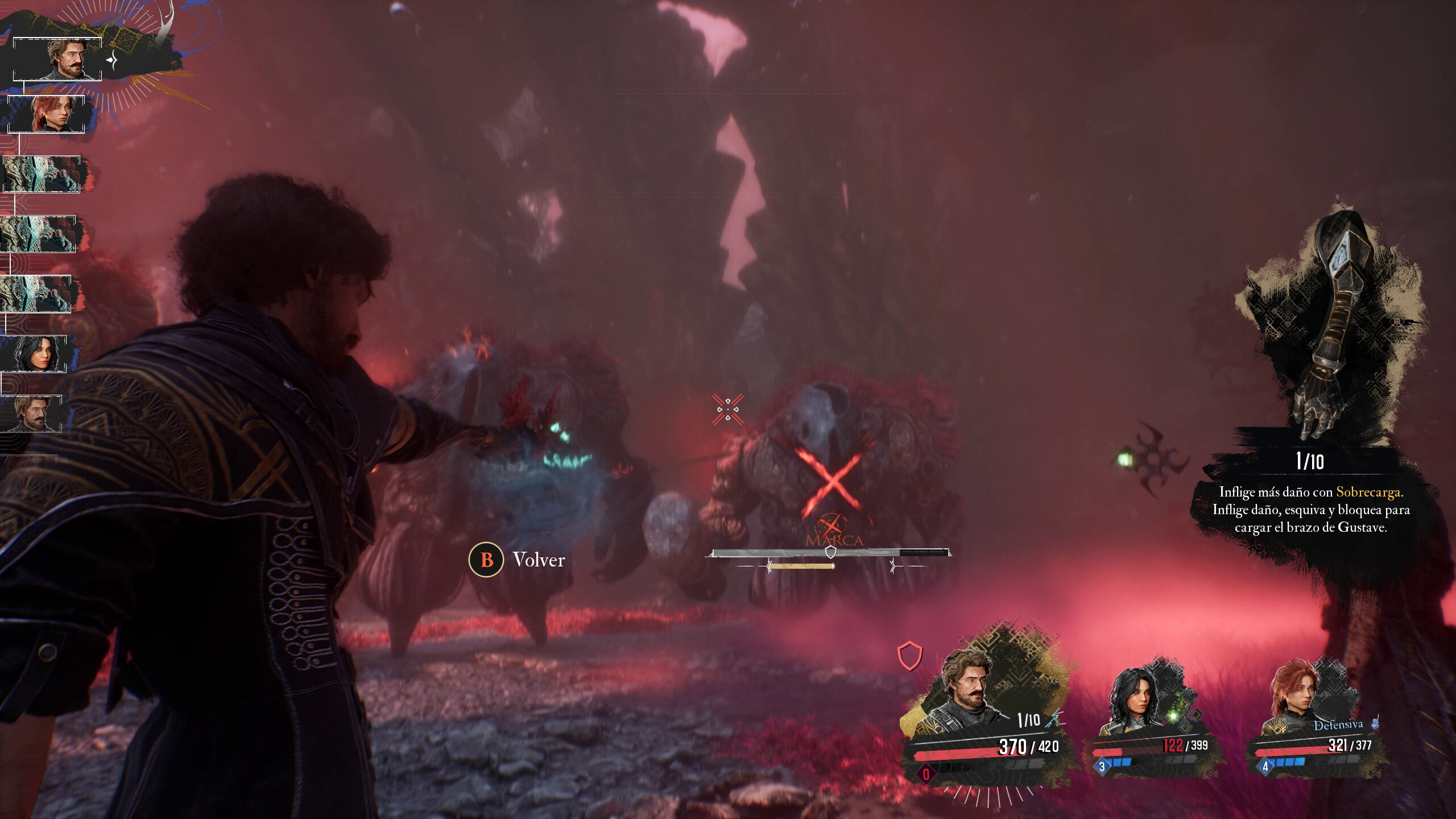 Gustave tiene un brazo mecánico que se carga durante el combate al ejecutar ciertos movimientos, y dispone de una habilidad de alto coste en puntos, pero poderosísima si el brazo está cargado al máximo. Las magias de Maelle generan orbes de distintos elementos que, a su vez, potencian el resto de conjuros. La espadachina Lune, tras ciertos movimientos, cambia de postura, potenciando sus siguientes ataques o mejorando la defensa ante los golpes enemigos, pero ciertas habilidades solo se pueden hacer, o se potencian, con una postura concreta. Por si fuera poco, hay sinergias entre los poderes de cada héroe. Todo esto contribuye a que los combates sean muy activos, y eso que aún no hemos visto qué tienen de especial los otros tres personajes que se sumarán al grupo.