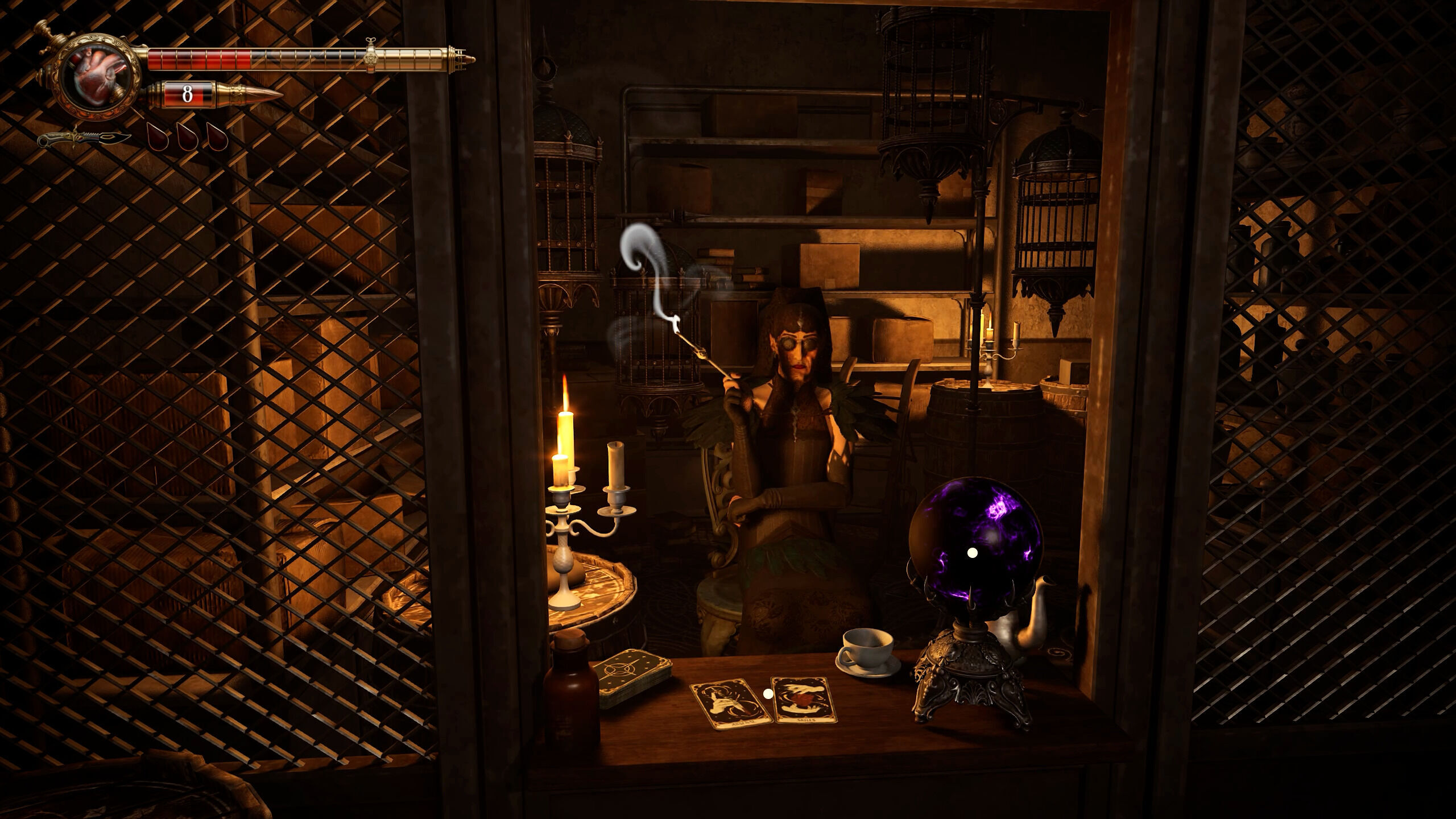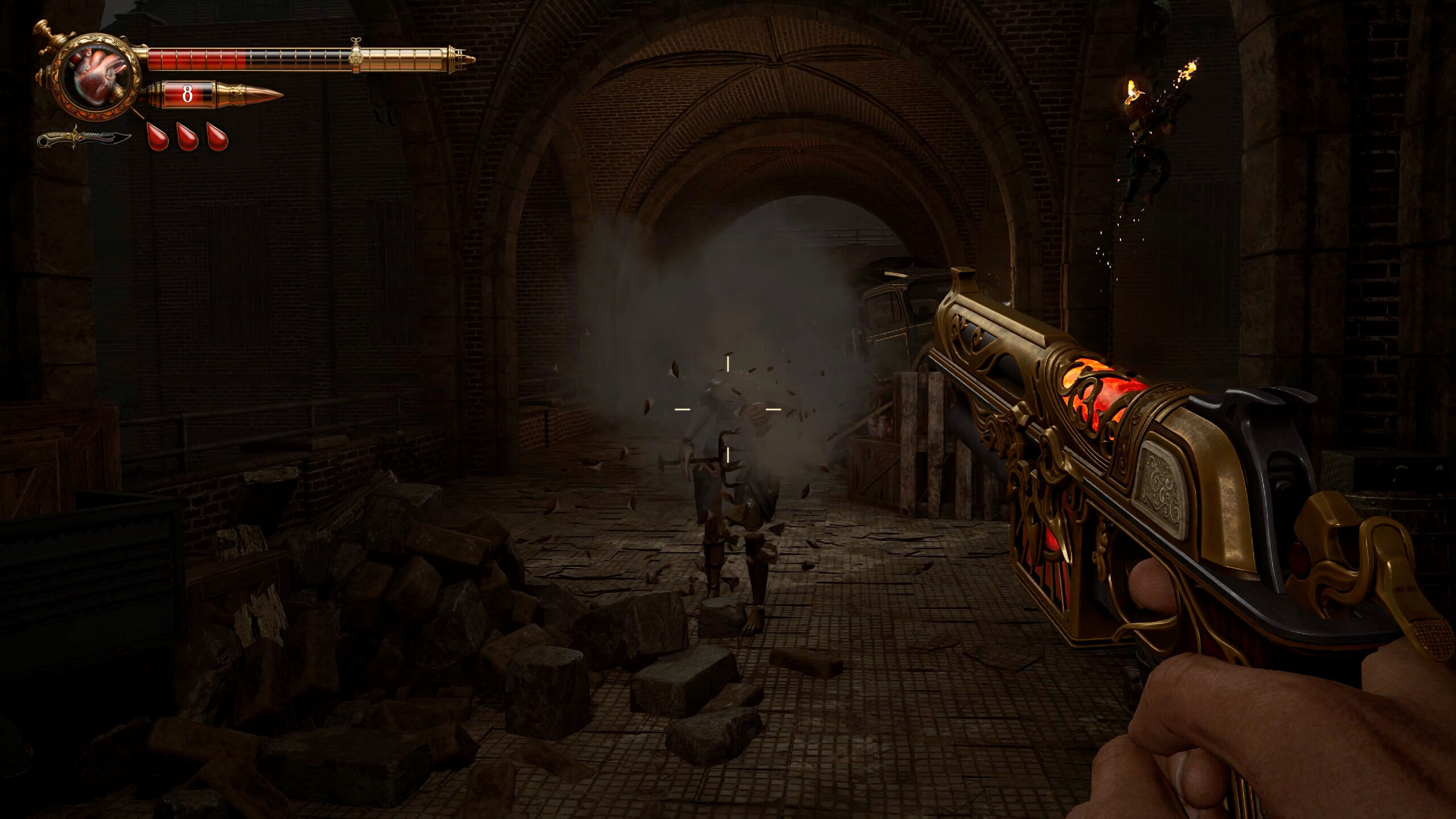 Son recursos jugables que conocemos de sobra, pero creemos que los desarrolladores se aprovechan justamente de ellos para ofrecernos un enfoque jugable clásico, con elementos que te resultarán nostálgicos si eres un veterano. En nuestro caso, la experiencia fue satisfactoria, también por otra mecánica que supone una de las claves identitarias de Crisol: Theater of Idols. Nos referimos a que para recargar tus armas necesitas usar tu propia sangre. Es una idea genial, porque si quieres más munición, debes sacrificar tu salud, lo cual supone un giro de tuerca con respecto a lo que hemos visto en muchos survival horror.