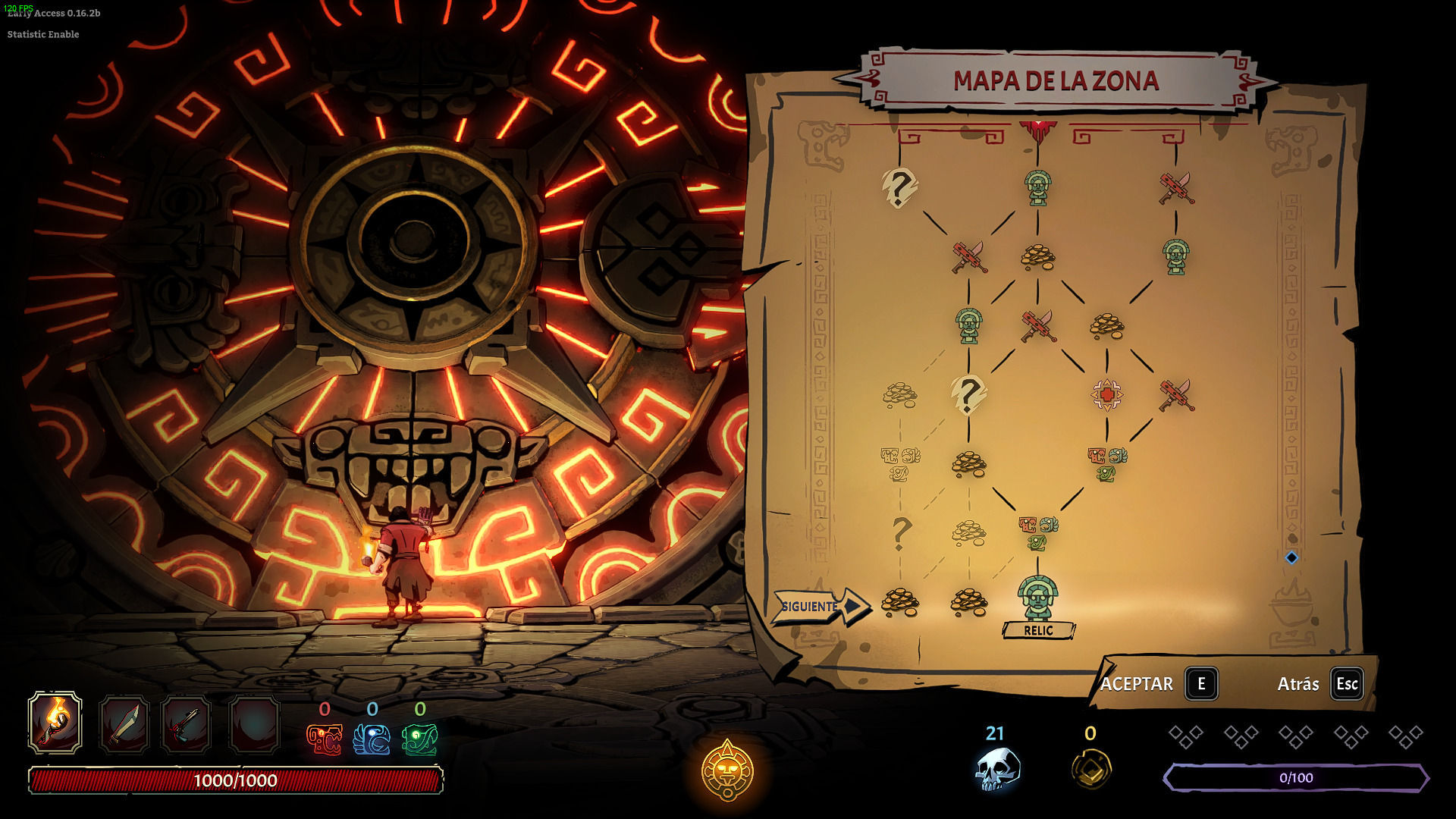Como ya hemos comentado, Passtech Games ha lanzado esta nueva obra en el acceso anticipado de Steam y, en este inicio, solo tenemos un templo con 4 niveles de exploración diferentes, un contenido que puede parecer escaso pero que se disimula bastante bien gracias a la dificultad del título, a que las rutas de exploración se generan de forma aleatoria tal y como dijimos antes y a que las distintas salas cuentan con unas cuantas variaciones que hacen que el templo no se haga repetitivo.