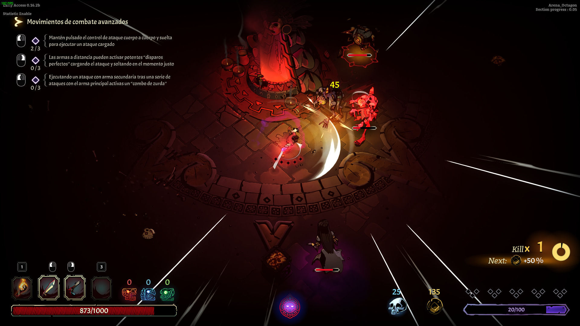 Un combate sencillo y funcional aderezado con armas, reliquias…