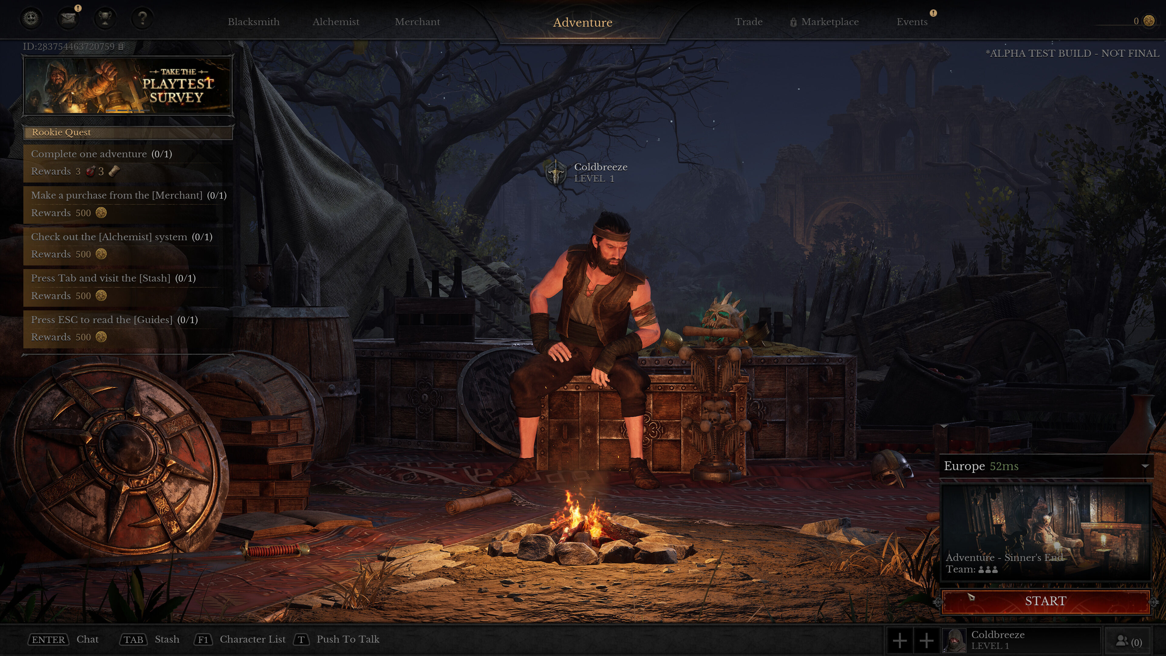 Una vez creamos al personaje nos encontramos con una interfaz que nos recordó a la saga Diablo en la que podemos ver al personaje sentado frente a una hoguera para descansar y una serie de pestañas que nos permiten interactuar con nuestros amigos los vendedores, siempre dispuestos a comprarnos nuestro botín o a sacarnos unas cuantas monedas de oro a cambio de nuevas espadas, pociones o armaduras.