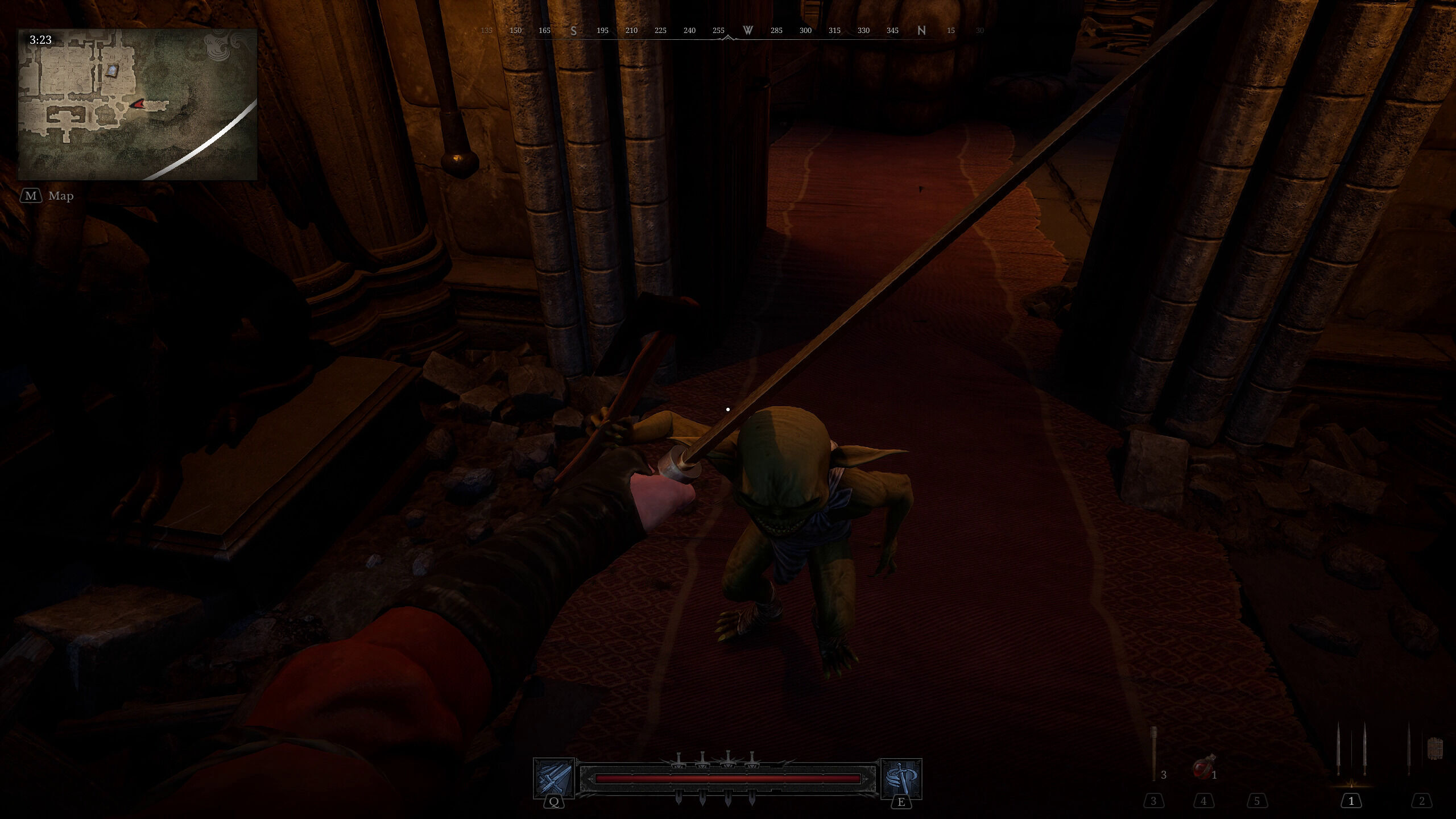 Tras elegir la mazmorra que queríamos visitar nos sumergimos en la misma, en nuestro caso al jugar solos nos hemos decantado principalmente por el Castillo Clouseau que es el que está habilitado para jugar en solitario en un modo PvPvE, es decir, que debemos enfrentarnos tanto a otros jugadores como a los peligros que nos aguardan en este castillo.