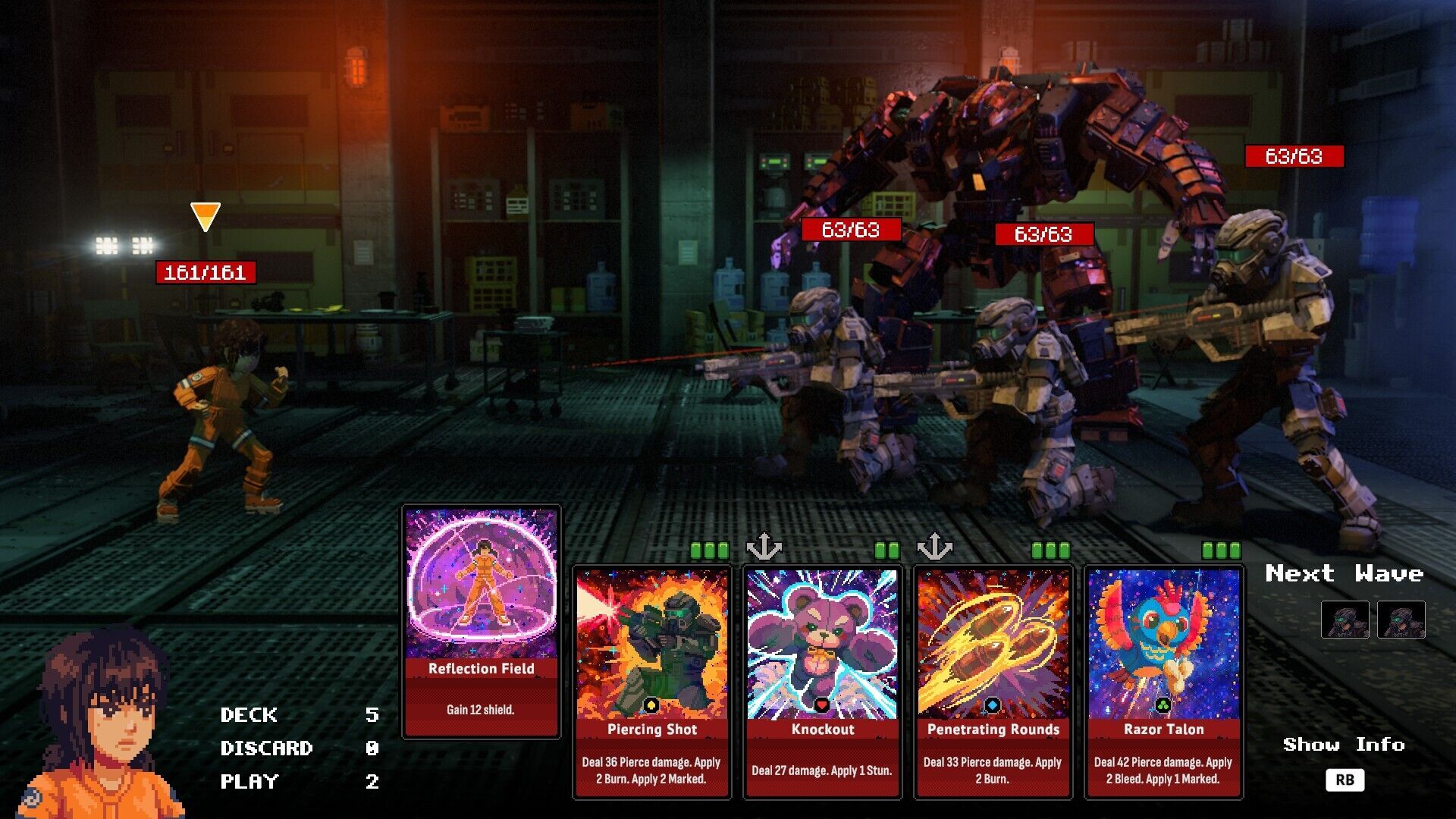 Algunas cartas tienen un número de usos limitados por combate, así que debemos gestionarlas bien durante las oleadas.