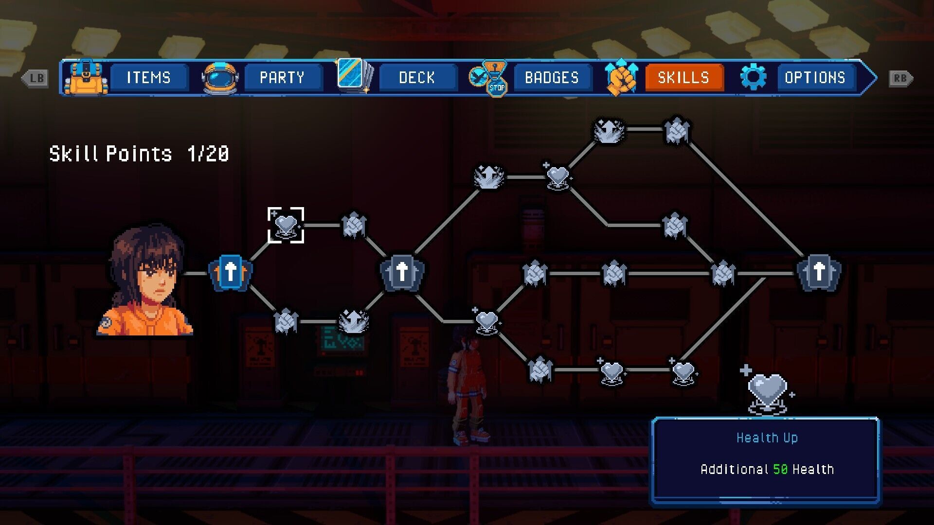 Podemos invertir puntos en un árbol de habilidades y equiparnos medallas para mejorar a nuestro personaje.