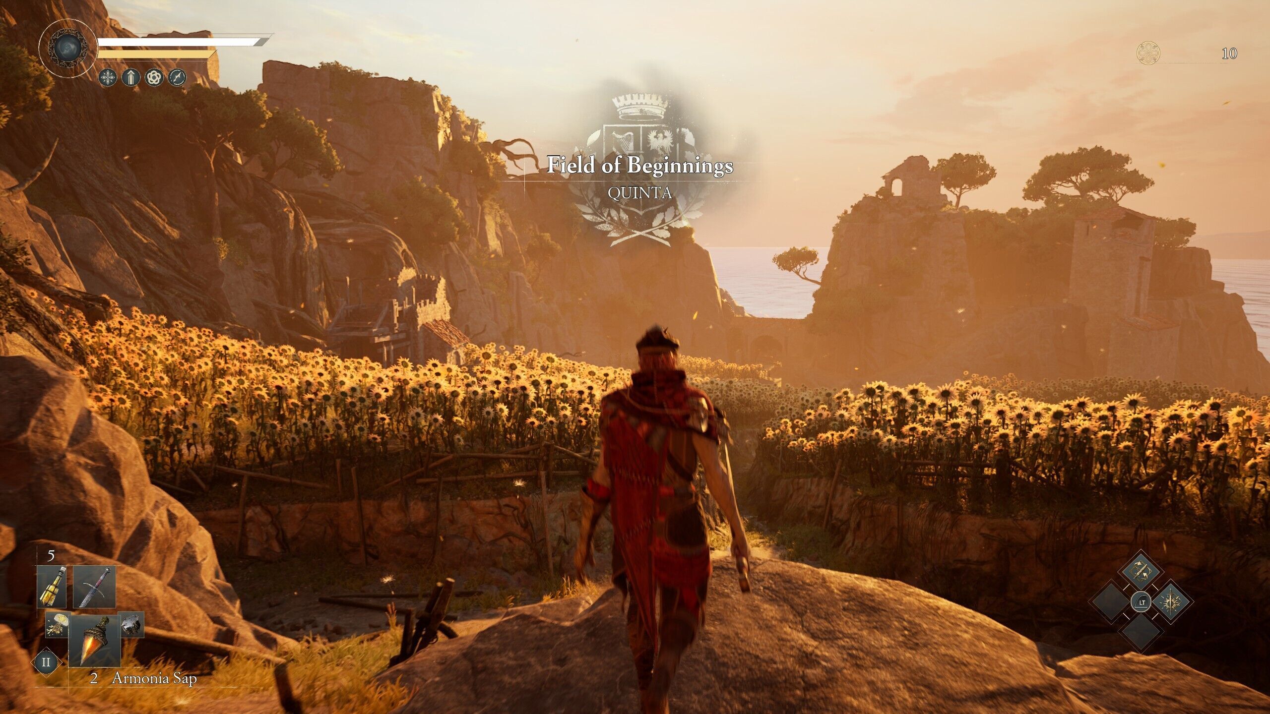 Ya desde la premisa argumental se ve esa intención de distanciarse, pero no mucho, del referente. Aquí se deja de lado la oscuridad y lo monstruoso, pero no la fantasía medieval ni lo críptico. En estas primeras partidas no se desarrolla mucho la historia, ni a través de escenas cinematográficas, ni con documentos ni con descripciones; se deja todo en manos de la narrativa ambiental.