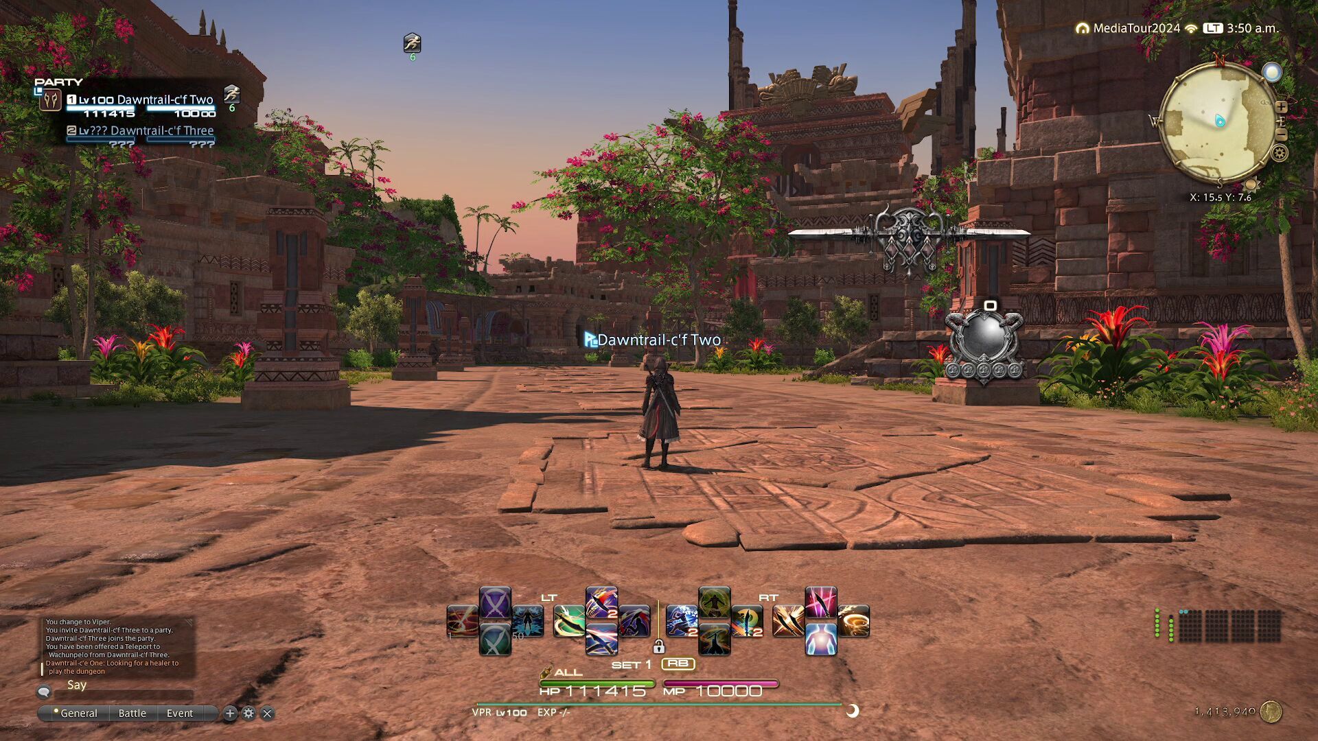 Así pues, tras mirar los documentos que nos facilitaron para aprender a jugar con ellas y trasteando con la interfaz hasta dejarlo todo a nuestro gusto, nos pusimos a probar el Viper, un nuevo oficio que cumple el rol de DPS cuerpo a cuerpo que lucha con dos espadas y que nos ha encantado por lo ágil y espectacular que es, pero cuya rotación y estilo de juego no parece nada fácil de dominar.