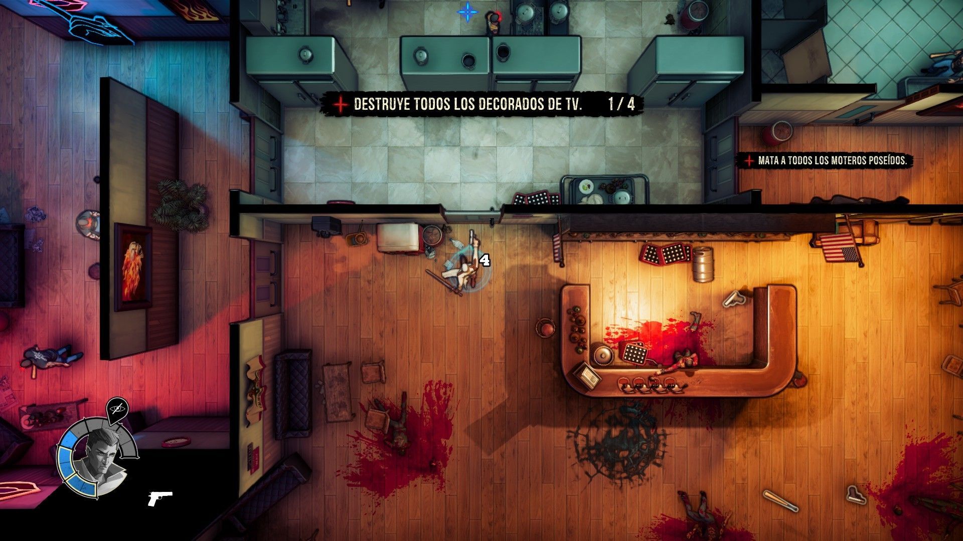 Es muy difícil hablar de God's Trigger sin mencionar en más de una ocasión a Hotline Miami, el éxito de Dennaton que se convirtió en un gran éxito con su debut en 2012. Aunque Hotline Miami no reinventaba las bases del género de la acción con vista cenital, su enorme personalidad, estilo audiovisual –música y gráficos-, historia y violencia extrema suavizada por el pixel-art lo convirtieron en un clásico instantáneo, tanto que nos ha sorprendido los pocos imitadores que han aparecido en este tiempo, si bien de vez últimamente se están lanzando más -véanse los recientes The Hong Kong Massacre y Ape Out-.