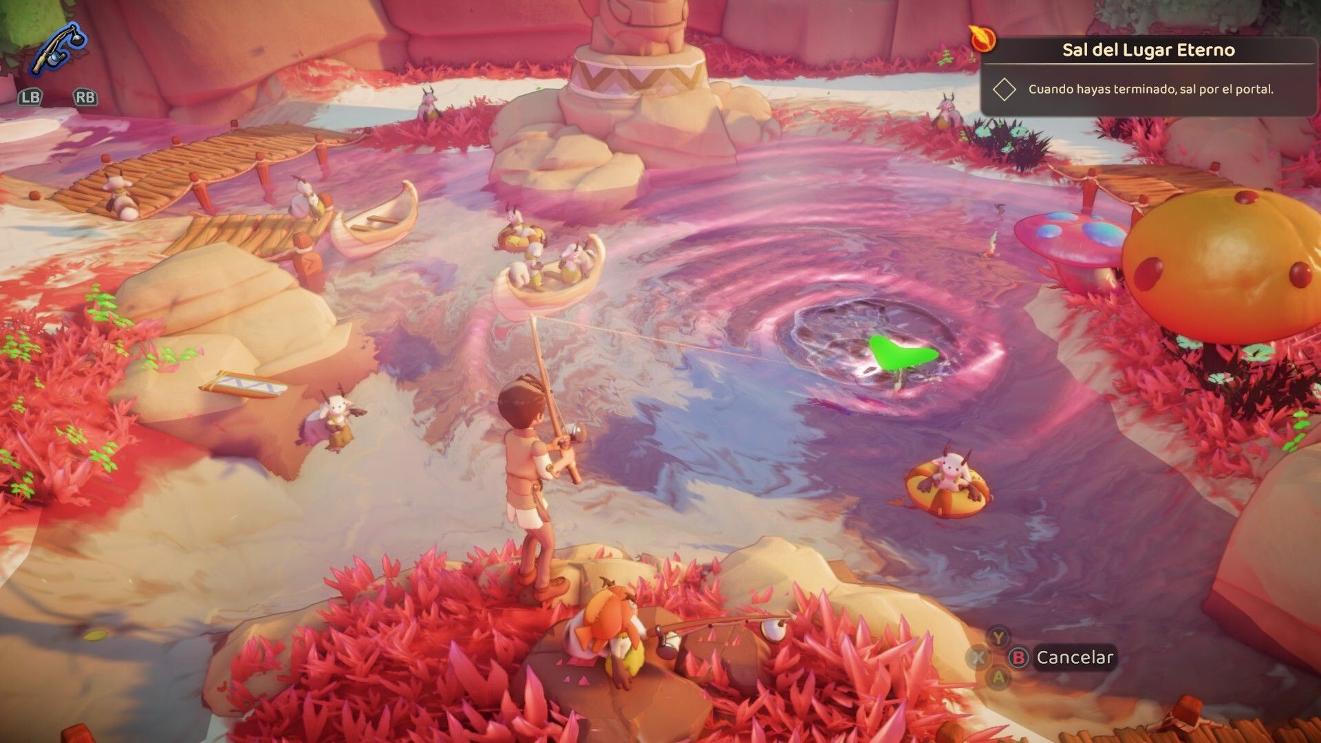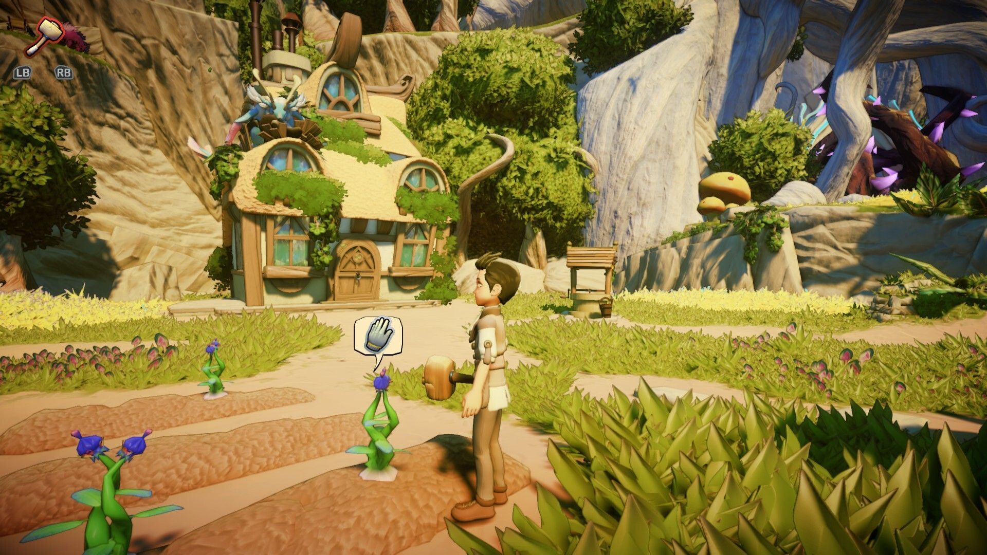 Por una parte podremos explorar un precioso mundo con toda una serie de acciones relacionadas con la obtención de recursos, algo muy habitual en este tipo de juegos. Dispondremos de martillo, hacha, hoz e incluso nuestras propias manos para recoger malas hierbas, cortar matorrales, obtener minerales y otros materiales, pero también permite participar en muchas tareas opcionales que marcan el ritmo de juego: caza de bichos, pesca, resolver puzles, investigar cuevas o hablar con otros personajes para conseguir algún tipo de misión que nos ayude a progresar o conseguir más recompensas. Al igual que Yonder, se nos plantea una enorme zona de juego con jugabilidad muy diversa y libertad para descubrir por nuestra cuenta; aunque hay un registro de las misiones y objetivos que vamos consiguiendo, no es el tipo de juego que te guíe paso a paso.