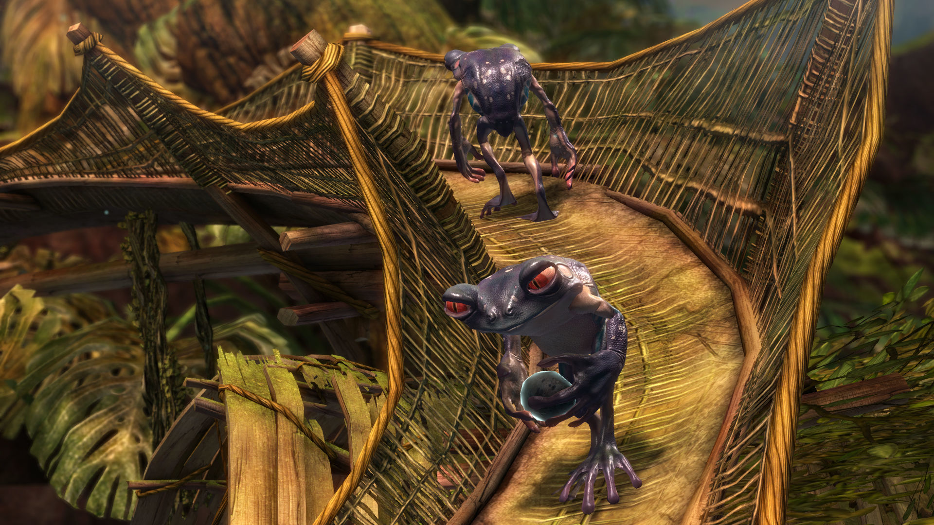 De hecho, hasta el diseño de los escenarios nos pondrá a prueba. Tras la misión de historia, llegamos a un poblado de casas colgantes en los árboles donde todo está conectado por estrechos puentes. Aquí hay muchos enemigos, algunos de ellos bastante duros, y nos sorprendió la facilidad con la que podíamos acabar cayendo al vacío si no cuidábamos nuestros pasos y nuestra posición en la batalla. Aunque claro, con un espacio tan limitado, nuestra movilidad era muy reducida, así que todo esto era más fácil de decir que de hacer.
