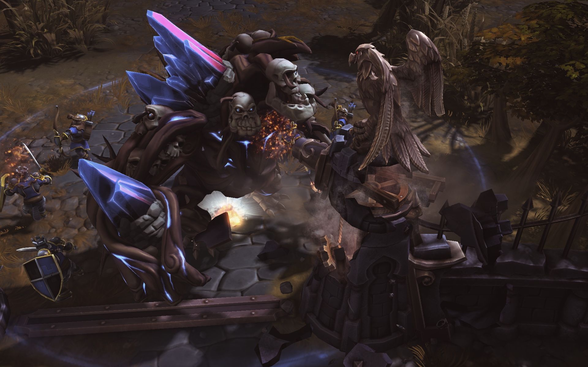 Pero la auténtica salsa de Heroes of the Storm y lo que más le diferencia del resto son sus mapas. Actualmente hemos podido batallar en seis distintos: Jardín del Terror, Bahía de Almanegra, Cuenca Maldita, Condado del Dragón, Minas Encantadas y el recientemente estrenado Templo Celeste. Cada uno de ellos nos propone cumplir una serie de objetivos durante la partida para conseguir diversas ventajas con las que machacar y arrasar a nuestros enemigos.