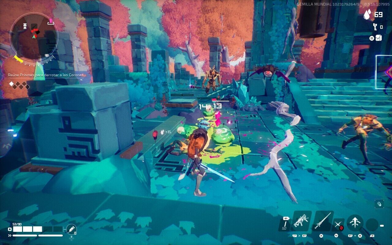 Si a esto le sumamos el horrible trabajo que hace Hyper Light Breaker a la hora de explicarte cómo funcionan sus mecánicas, acabas dando vueltas como un pollo sin cabeza intentando averiguar la mejor manera de jugar. Y sí, podemos meternos en internet a buscar vídeos y guías al respecto, pero no creemos que sea algo que los desarrolladores tengan que delegar a los creadores de contenido. Tampoco pedimos que nos lleven de la mano y nos interrumpan constantemente con textos. Hay muchas maneras de guiar al jugador de manera natural e indirecta, algo que, curiosamente, pensamos que su predecesor hacía mucho mejor.