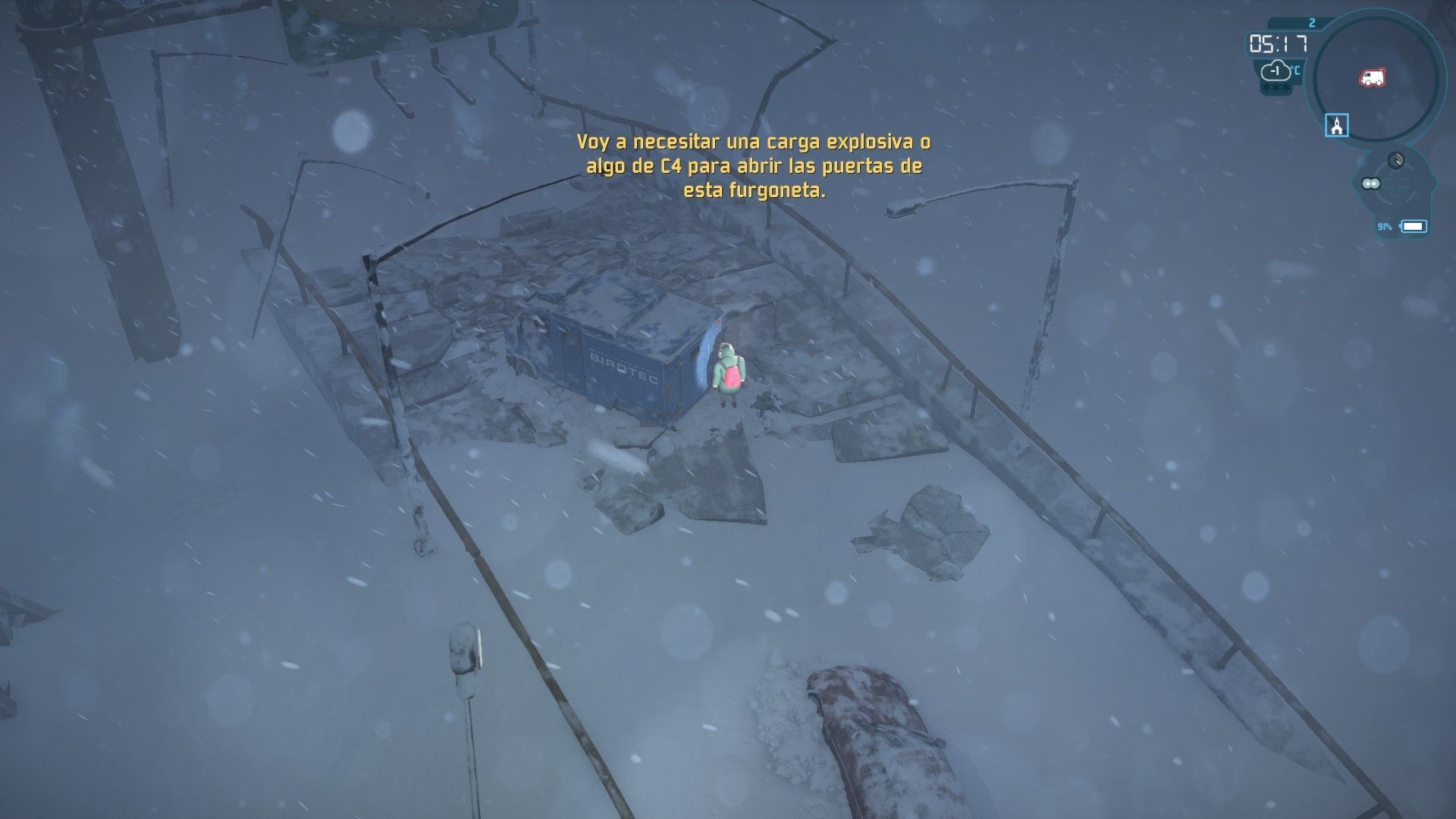 Jacob cuenta con su propia barra de experiencia, al igual que nuestro acompañante directo, el robot de reconocimiento con radar y luz que nos sigue y que puede mejorar con el tiempo. Al igual que nuestro protagonista, que siente y padece factores como el frío y el hambre, nuestra pareja de supervivencia tiene batería finita, por lo que tendremos que controlar los recursos disponibles a medida que exploramos para no acabar desfalleciendo en mitad de la exploración.