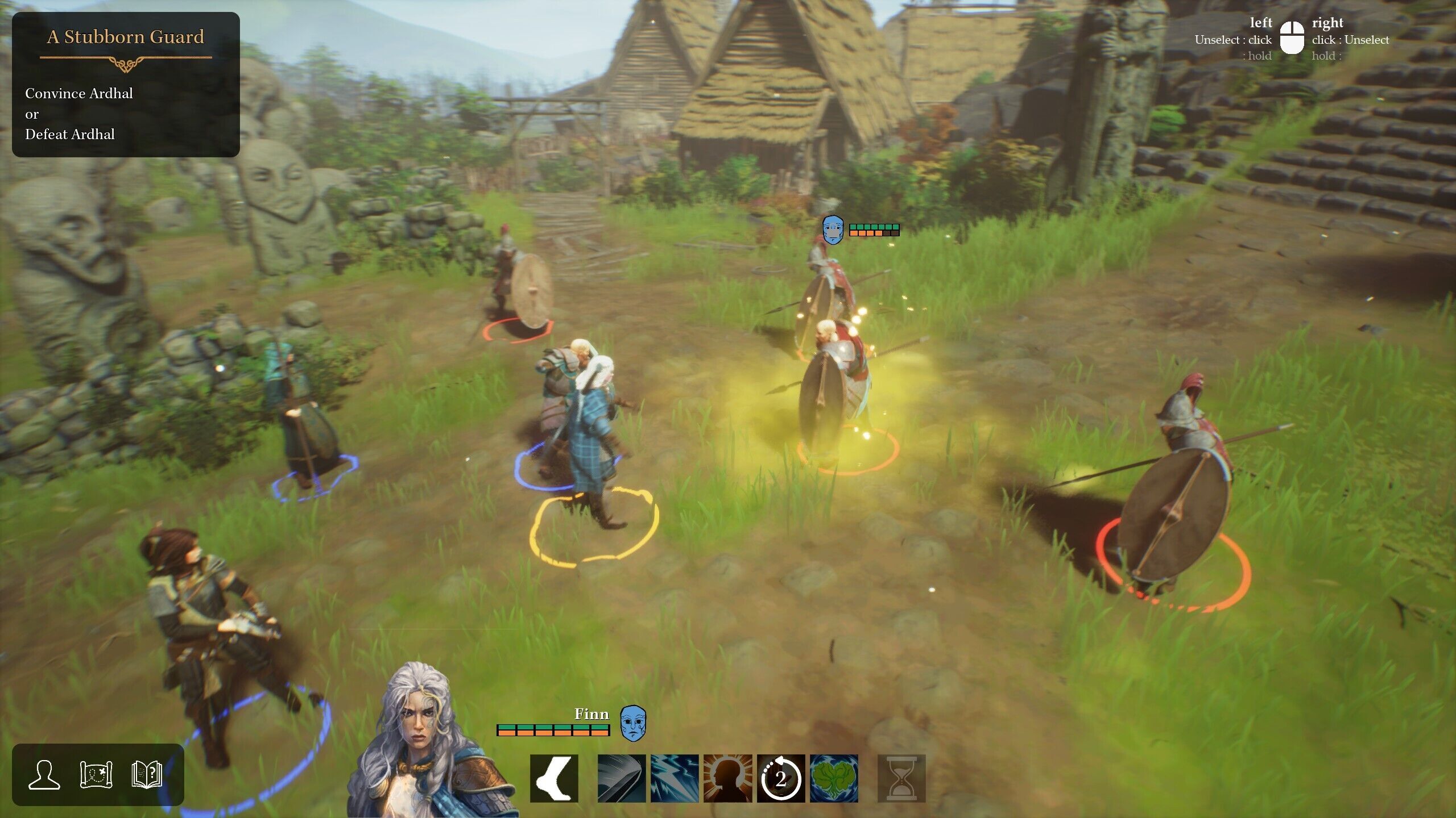 En el desarrollo de la historia también influirá cómo abordamos los enfrentamientos, pues, como indicamos antes, se pueden resolver de manera no violenta. Se trata de un sistema de combates por turnos donde las unidades aliadas y adversarias se mueven en una cuadrícula; primero actúan todos nuestros personajes, después los enemigos, y así sucesivamente. Sin embargo, tiene la peculiaridad de que los personajes no tienen iniciativa: en nuestro turno podemos elegir el orden en el que actúan nuestras unidades, lo que da pie a combos interesantes. Los desarrolladores dicen haberse inspirado en la mezcla de elementos de videojuegos como Divinity: Original Sin II, aunque con menos profundidad. Hay sinergias: por ejemplo, con la druida podíamos mojar a un adversario para después, con la arquera mágica, lanzar una flecha eléctrica que le hacía más daño si estaba mojado.