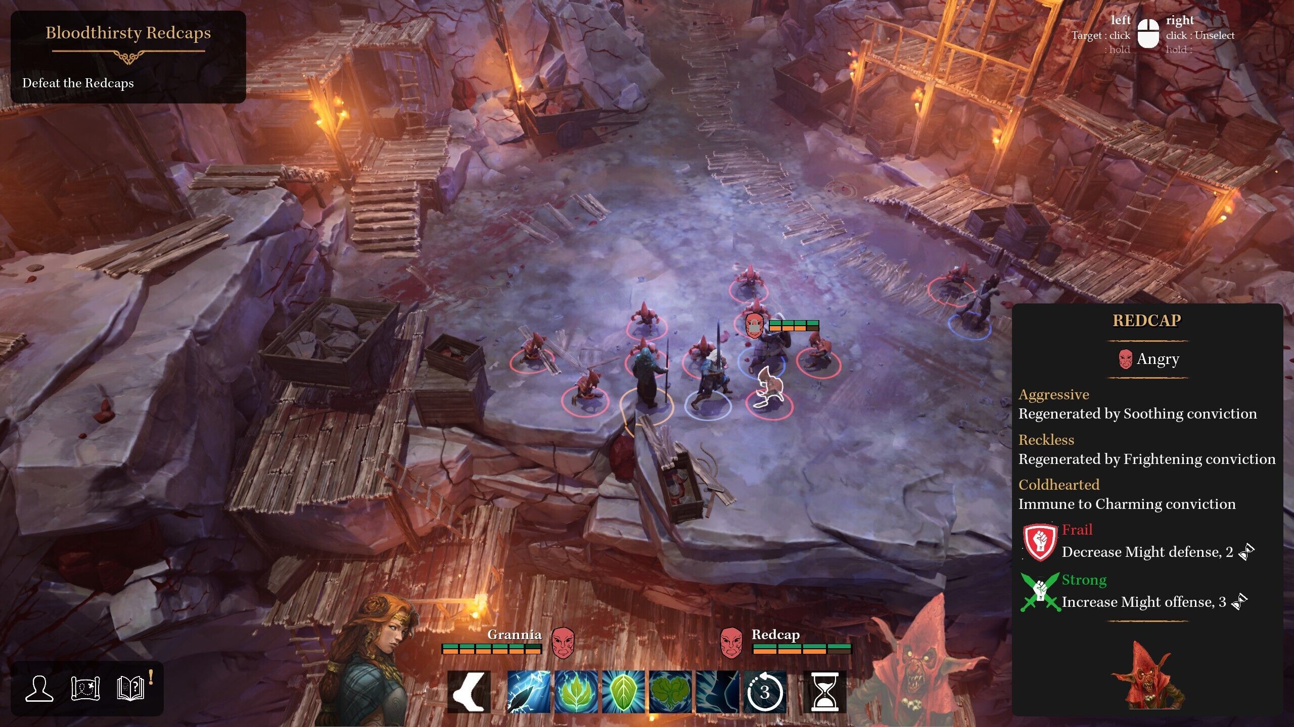 Por el contrario, cuando tratamos de librarnos de los Redcap (unos goblins del folclore gaélico) mediante acciones no violentas las pasamos canutas. Aunque terminamos recurriendo a la violencia, con planificación y paciencia no era imposible hacerlo pacíficamente. El juego contribuye a insistir y a probar diferentes estrategias al penalizar poco la derrota: cuando todas nuestras unidades caen, el combate se reinicia, y al concluir una batalla, los puntos de salud de nuestro grupo se restablecen.