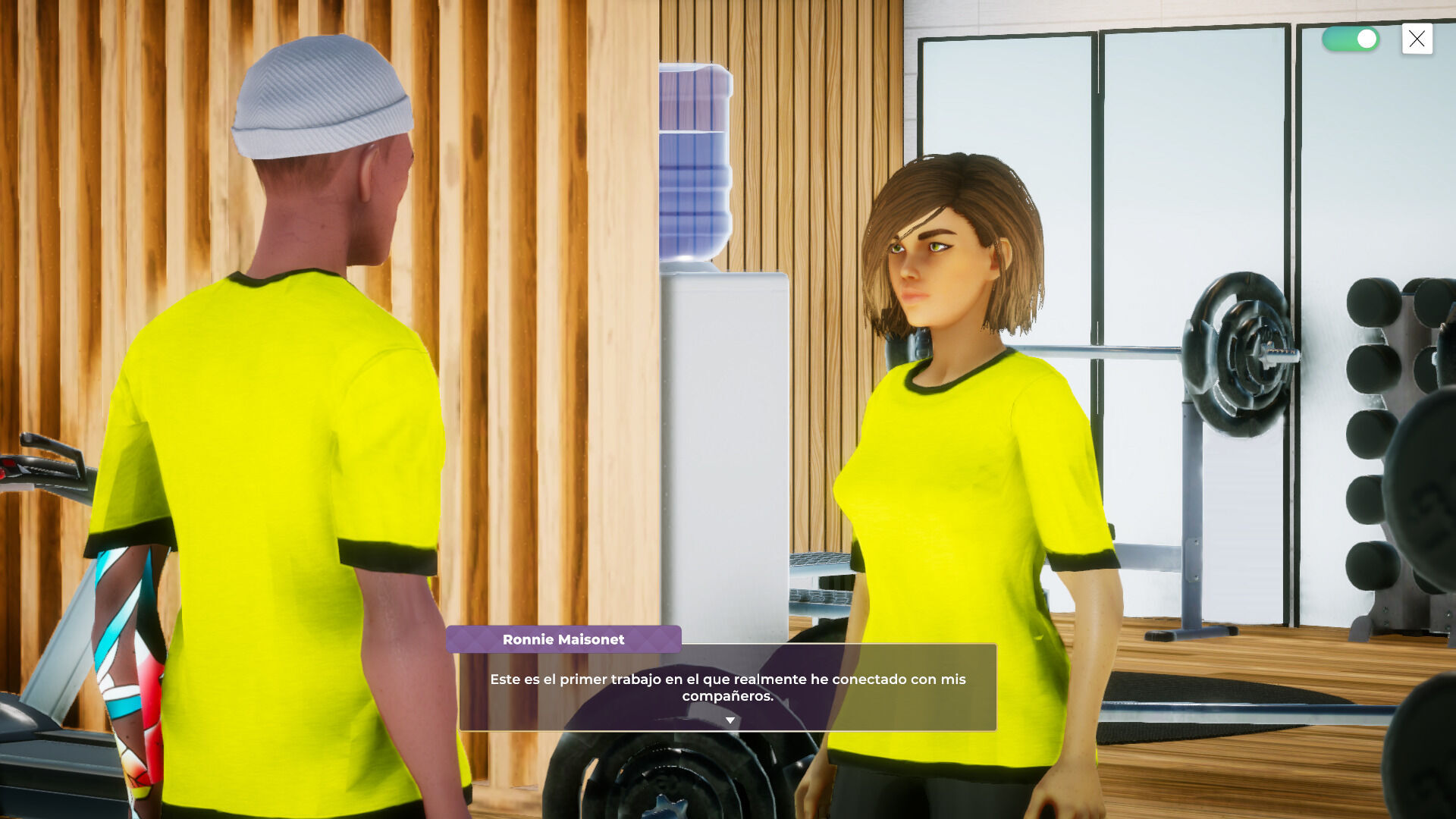 Durante el día de trabajo, en el que se interactúa con las máquinas del gimnasio y los asistentes, aparecen sin descanso notificaciones en la esquina superior derecha de la pantalla: es una especie de red social en la que aparecen mensajes, necesidades y actividades del resto de los miembros del vecindario o de la ciudad. El centro de entrenamiento era un espacio de lujo, amplio, con varias plantas y decorado al detalle, de esos que solo unos pocos se pueden permitir, pero en cualquier momento se puede modificar o crearlo desde cero si así se desea.