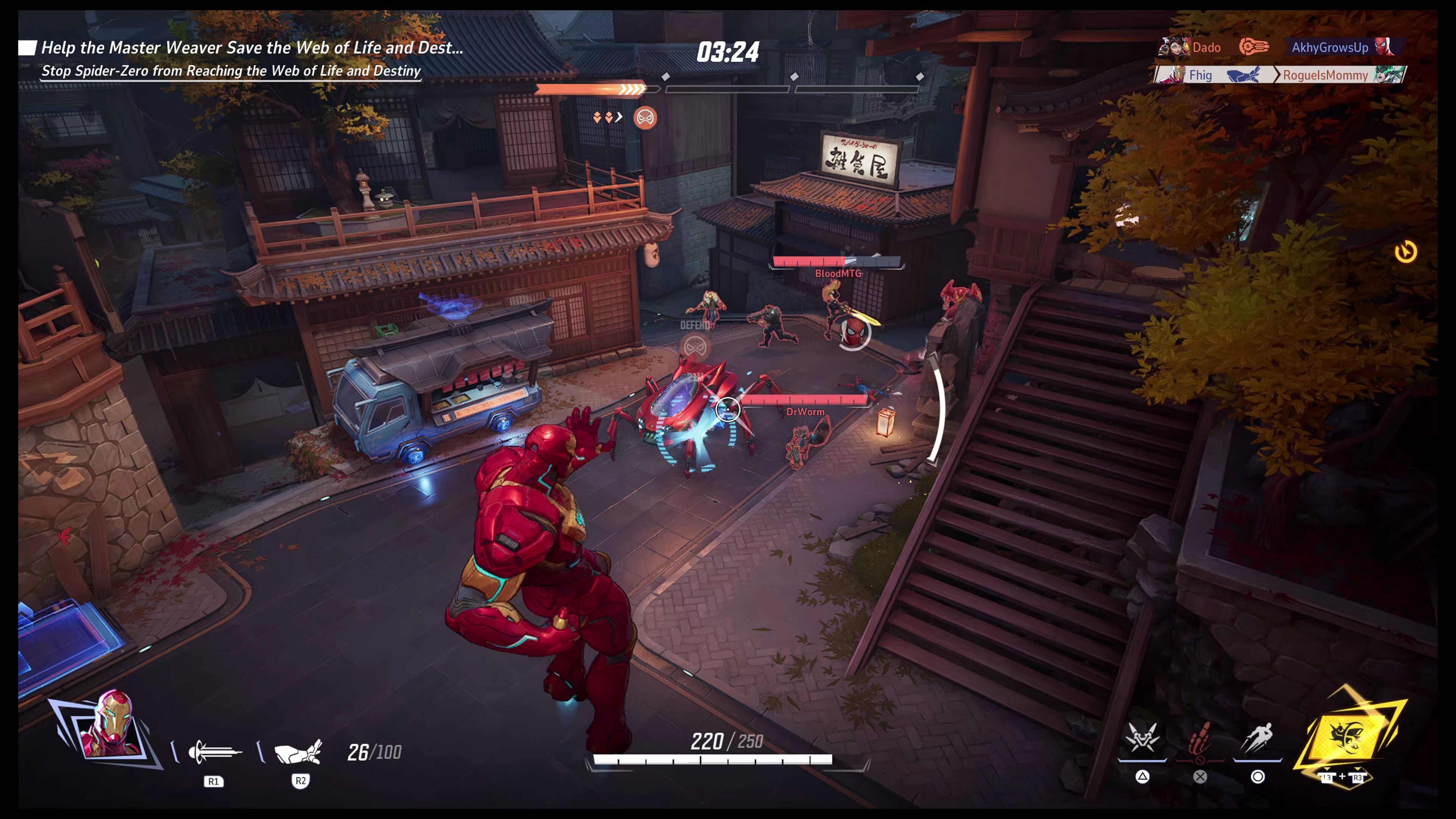 Eso sí, a nivel puramente mecánico, hemos tenido la sensación de que hay cierta falta de ideas, ya que la mayoría de ellos beben demasiado de lo que hemos visto en otros juegos similares. Un buen ejemplo de esto lo tenemos en Punisher, un combatiente que es una mezcla entre Soldado 76 y Bastion de Overwatch, mientras que Storm es muy parecida a Lucio, pero pudiendo volar y con el rol de atacante. Hasta Star-Lord tiene una habilidad que es idéntica a la definitiva de Reaper.
