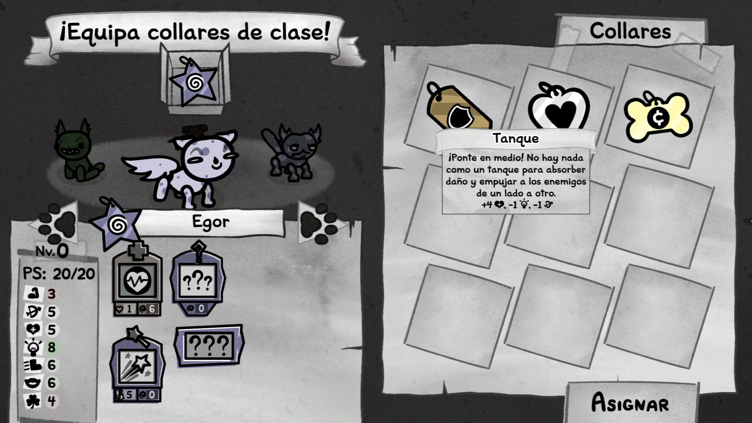 Antes de lanzarte a la 'run' tienes que elegir la clase de cada gato en base a sus habilidades preestablecidas.