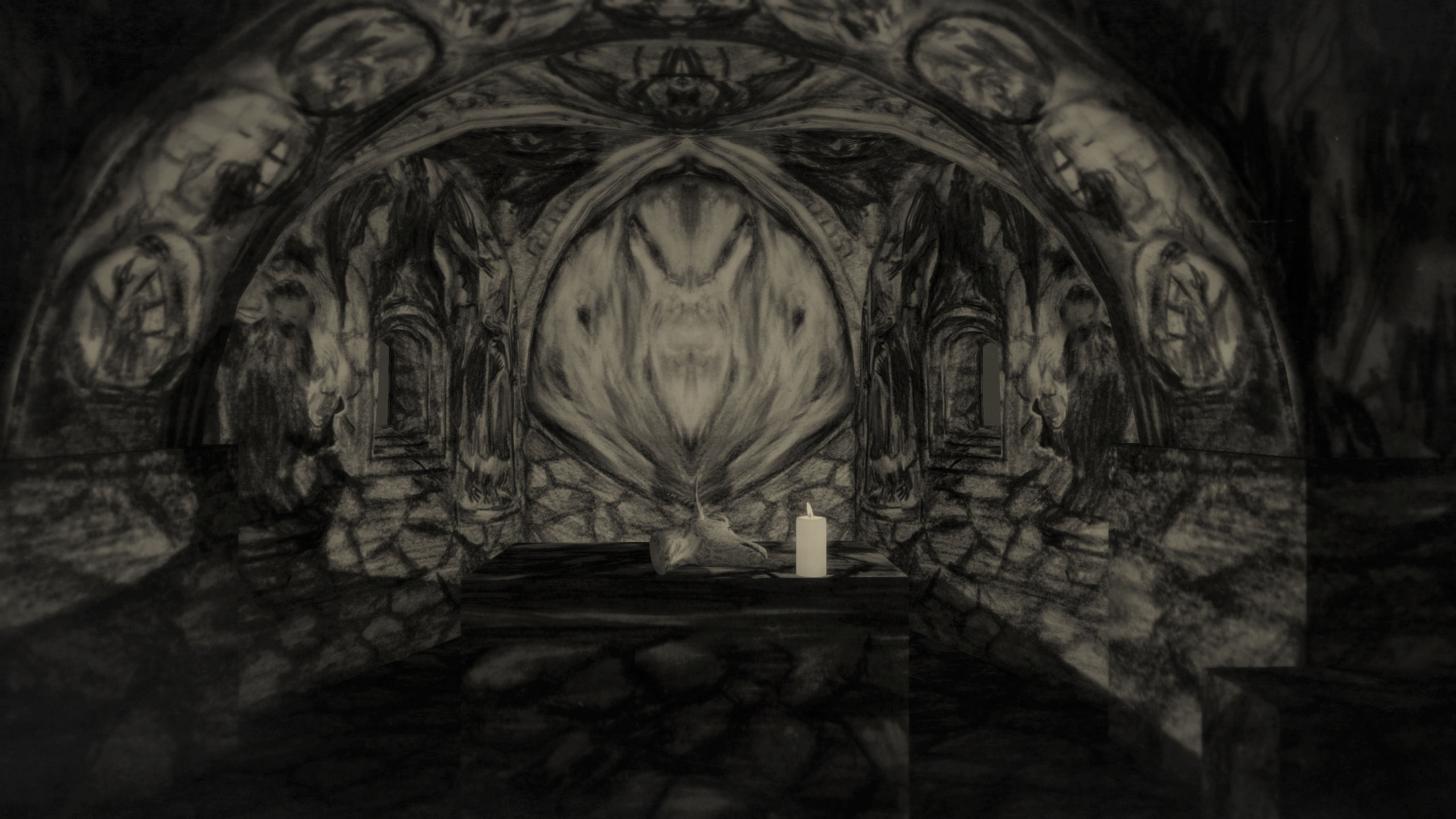 La exploración es una parte importante de la obra, casi tanto como la narrativa y los puzles. La trama, que durará entre seis y ocho horas, está dividida en tres días en los que exploramos tres zonas distintas de Mundaun, tres pequeños pero densos mundos abiertos. La demo que vimos comenzaba en el tercer día y en la segunda zona. Cardin se encontraba en la casa que servía de estudio al artista ficticio Serpentini; las paredes estaban repletas de dibujos inquietantes de caras y de formas irreconocibles.