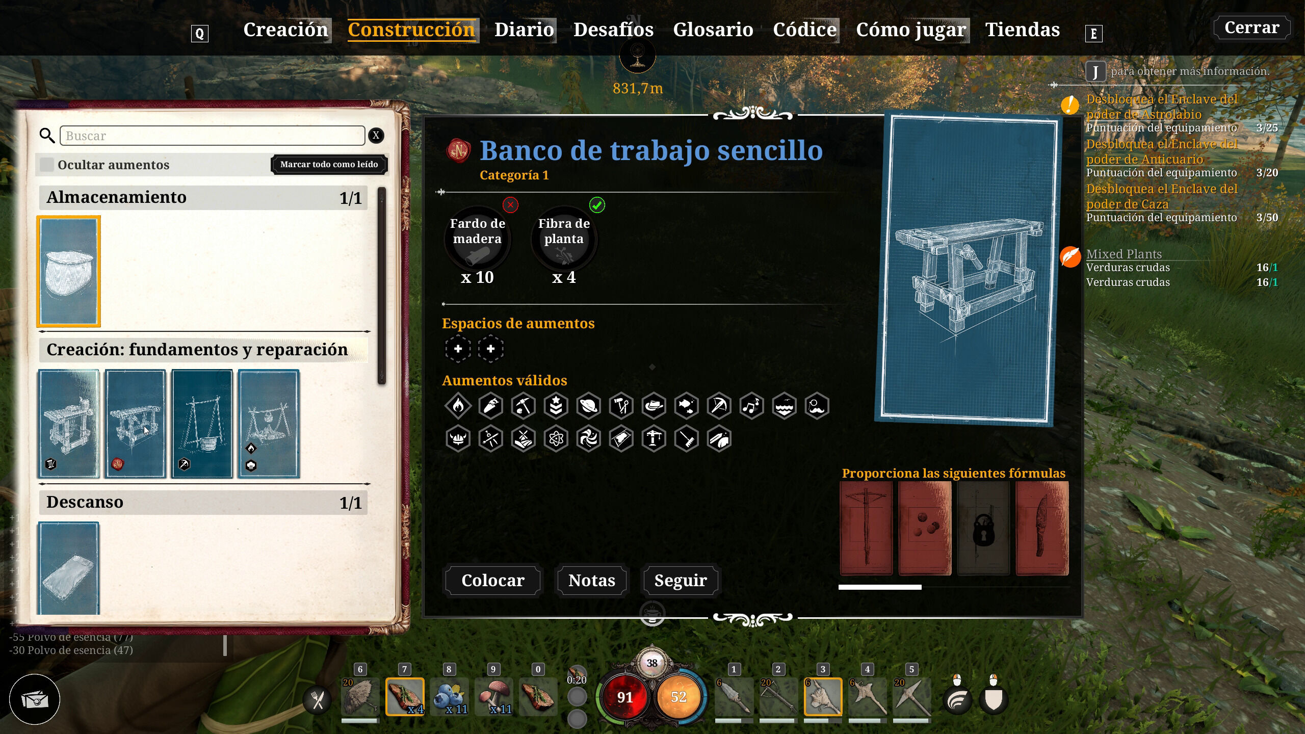 De entrada comencemos por lo básico que es la supervivencia, la columna vertebral del juego con una base similar a otros títulos del género. Tenemos que alimentarnos, recolectar recursos, construir una pequeña base y distintos puestos de trabajo para crear nuevo equipo que nos vendrá de perlas para seguir explorando los diferentes reinos de Fae y atravesando portales.