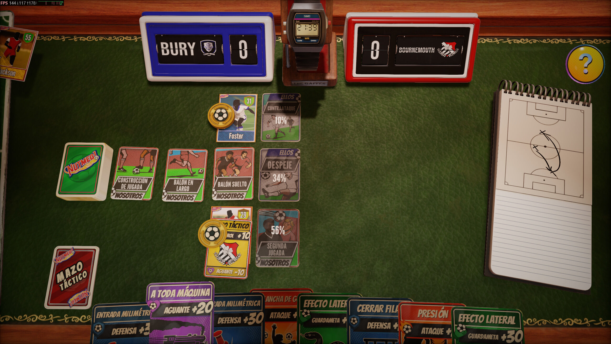 Este sistema a veces depende en exceso del azar, pero la experiencia es muy satisfactoria cuando logramos aumentar a base de cartas las probabilidades de ejecutar una acción a nuestro favor. Además, podemos dar entrada a jugadores de refresco cuando el equipo flaquea o desplegar la "esponja mágica" para recuperar a un jugador tras una entrada dura.