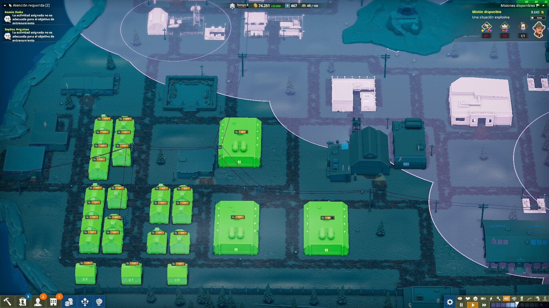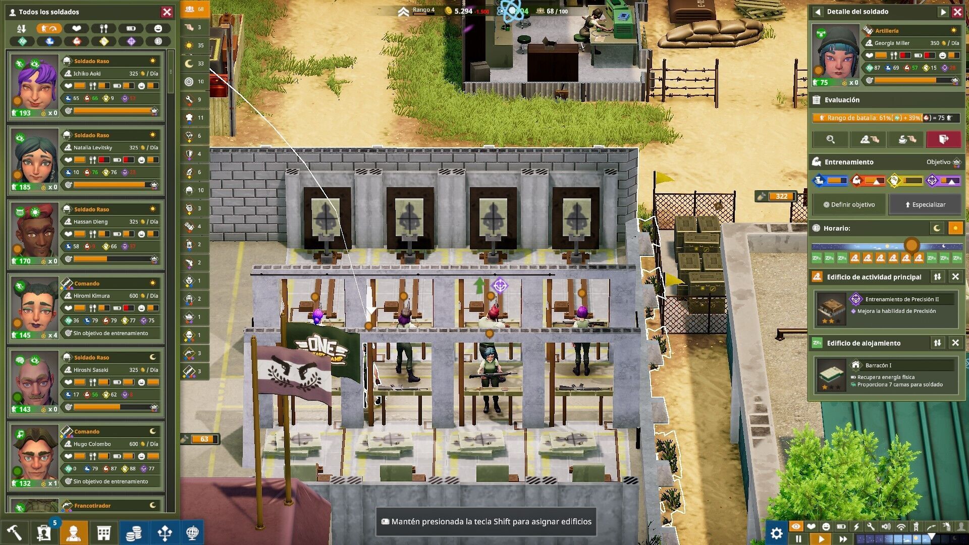 Los requisitos de los soldados para enviar a las misiones marcan el ritmo del juego y obligan al jugador a llevar un ritmo bastante alto para cumplirlas antes de quedarse sin dinero, viendo la mejor manera de conseguir llevar a un soldado a la especialización requerida.