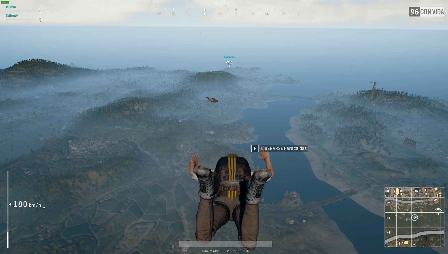 El avión del que saltaremos realizará un vuelo diferente con cada nueva partida e inicialmente no conoceremos la zona en la que se ubicará el área de juego. En nuestro salto en paracaídas podremos optar por caer sobre una ciudad grande, con más suministros y enemigos, o en una zona algo más aislada y sin tantos objetos disponibles. Independientemente de nuestra decisión, los primeros minutos serán vitales para armarnos y encontrar enseres de valor.