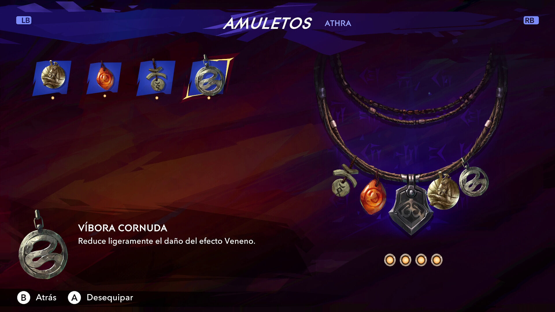 Ya que hemos mencionado los amuletos, conviene señalar que el juego cuenta con un sistema clavado al de los broches de Hollow Knight. De este modo, a medida que juguemos iremos encontrando una serie de amuletos que podremos equiparnos y que nos dan todo tipo de ventajas, como una mayor protección contra el veneno, aumentar el número de golpes de nuestro combo básico y ralentizar el tiempo a nuestro alrededor al realizar una parada perfecta. Por supuesto, tenemos un número de huecos limitados para equiparlos (ampliable, claro) y hay broches que ocupan varios, obligándonos a decidir qué combinaciones queremos utilizar según nuestras preferencias y nuestro estilo de juego. Es un sistema sencillísimo y muy poco original, pero que funciona de lujo y tiene una buena sinergia con el resto de elementos de la aventura. Además, casi todos los amuletos que hemos encontrado nos han parecido interesantes y útiles en mayor o menor grado, lo que ha acabado provocando que nos haya costado mucho decidirnos por unos y descartar otros.