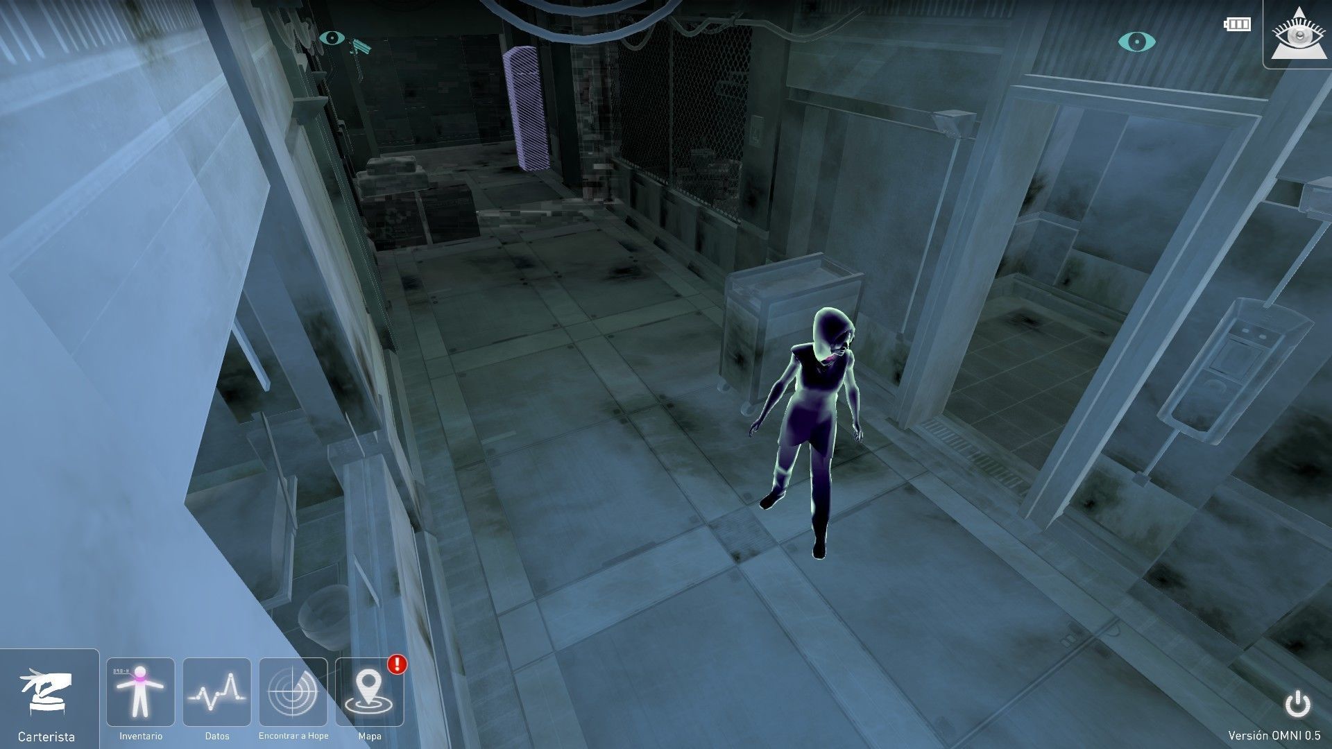 Nosotros somos un ente externo a este mundo, ni siquiera nos comunicamos verbalmente con la protagonista, y toda nuestra relación se establece a través de un teléfono móvil, mediante el cual vamos ayudando a Hope de diversas formas. Indicándole dónde tiene que moverse para dar esquinazo a los guardias, abriéndole puertas, hackeando sistemas informáticos, etcétera, ya que nosotros nos movemos por su mundo a través de las cámaras de seguridad que pueblan las instalaciones. Si habéis jugado al polémico juego de Ubisoft que lanzó el año pasado, Watch Dogs, os podéis hacer una buena idea de cómo funciona, teniendo que saltar de unas cámaras a otras para desplazarnos por los escenarios.