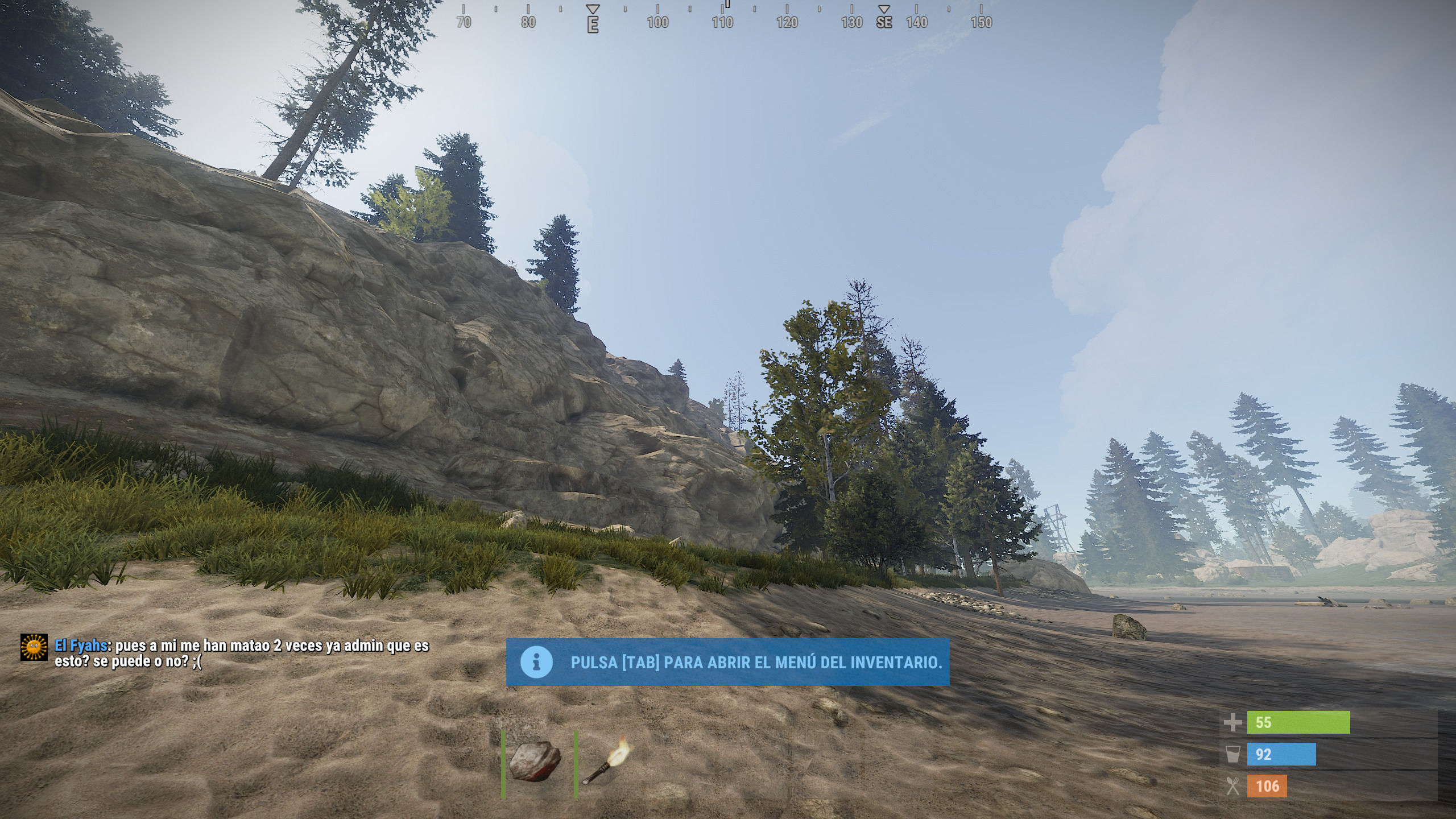 Rust es, principalmente, un videojuego de supervivencia en un entorno postapocalíptico y eso se percibe desde la primera vez que entramos en un servidor comenzando la partida totalmente desnudos y tan solo equipados con una enorme piedra y una antorcha que debemos de utilizar para explorar una isla, recolectar recursos y, poco a poco, fabricar un refugio, armas y comenzar a avanzar tal y como queramos hacerlo, con libertad casi total.