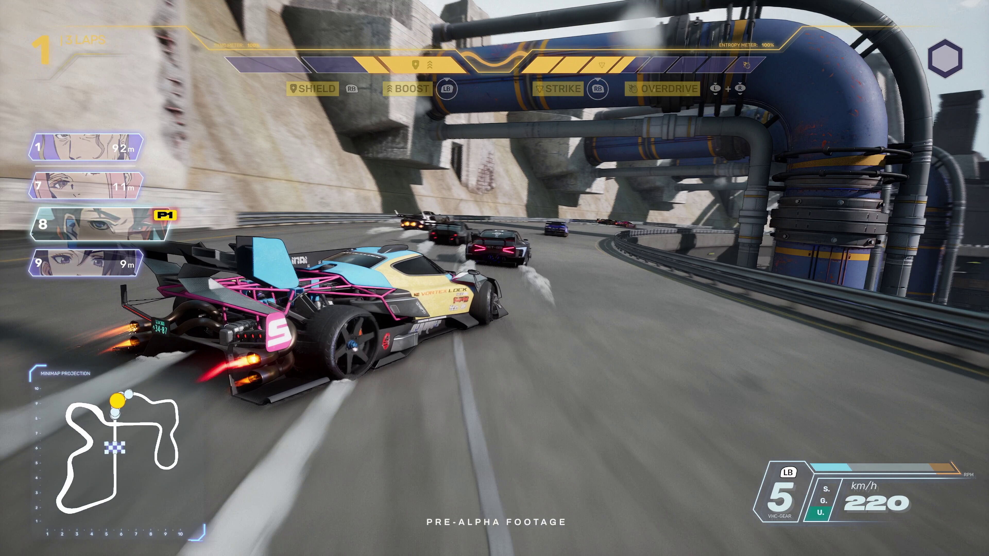 Tras idear e iterar, dieron con la tecla, nos explica en una presentación en Gamescom el director del juego, Federico Cardini. Mejor dicho, dieron con la palanca. La principal diferencia es que no se derrapa ni con el gatillo ni con un botón, sino con la palanca derecha. Las consecuencias de esto son muchas, como explicaremos más adelante. A partir de ahí, crearon un juego con cuatro pilares: el gameplay es lo más importante, conserva un diseño arcade, tiene una estética anime, y hay un "enorme énfasis en la narrativa", que a la postre se conecta con la mecánica principal.