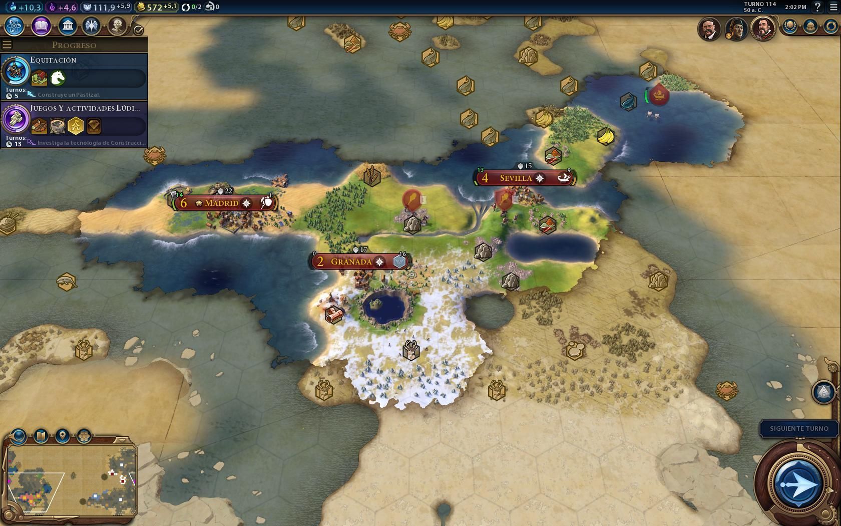 Cuando pierdes la visión de una zona, esta toma el aspecto de mapa antiguo y el pergamino va desvelando sus contornos y los recursos. Es menos claro que el modelo que había antes, pero queda muy bonito y ayuda a sentir que estás jugando con la Historia de la Humanidad.