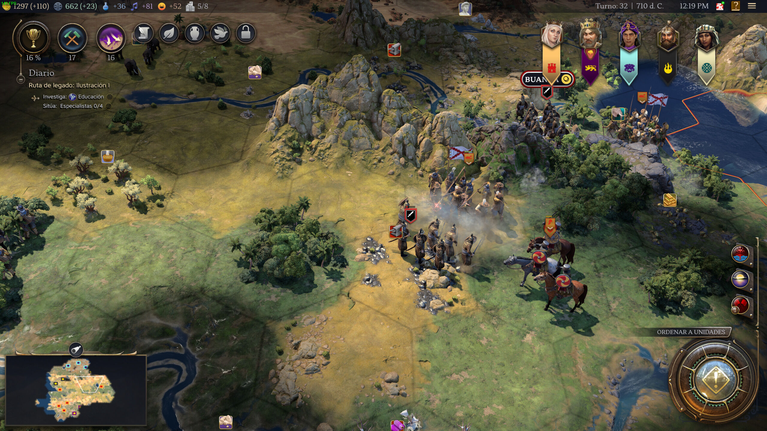 percatado es que la IA es mucho más agresiva en el inicio de la partida si hablamos de nivel bélico. Va a ser importante crear unidades de combate de forma relativamente rápida o bien para realizar algún ataque relámpago a una civilización enemiga que este cerca de nuestra capital pero, sobre todo, será necesario para defendernos de las unidades de las ciudades estado independientes o de posibles intentos de ataque de otras facciones, algo que en realidad se agradece para que el inicio de la partida sea más dinámico y tengamos que estar pendientes desde los primeros compases de la misma de nuestros rivales.