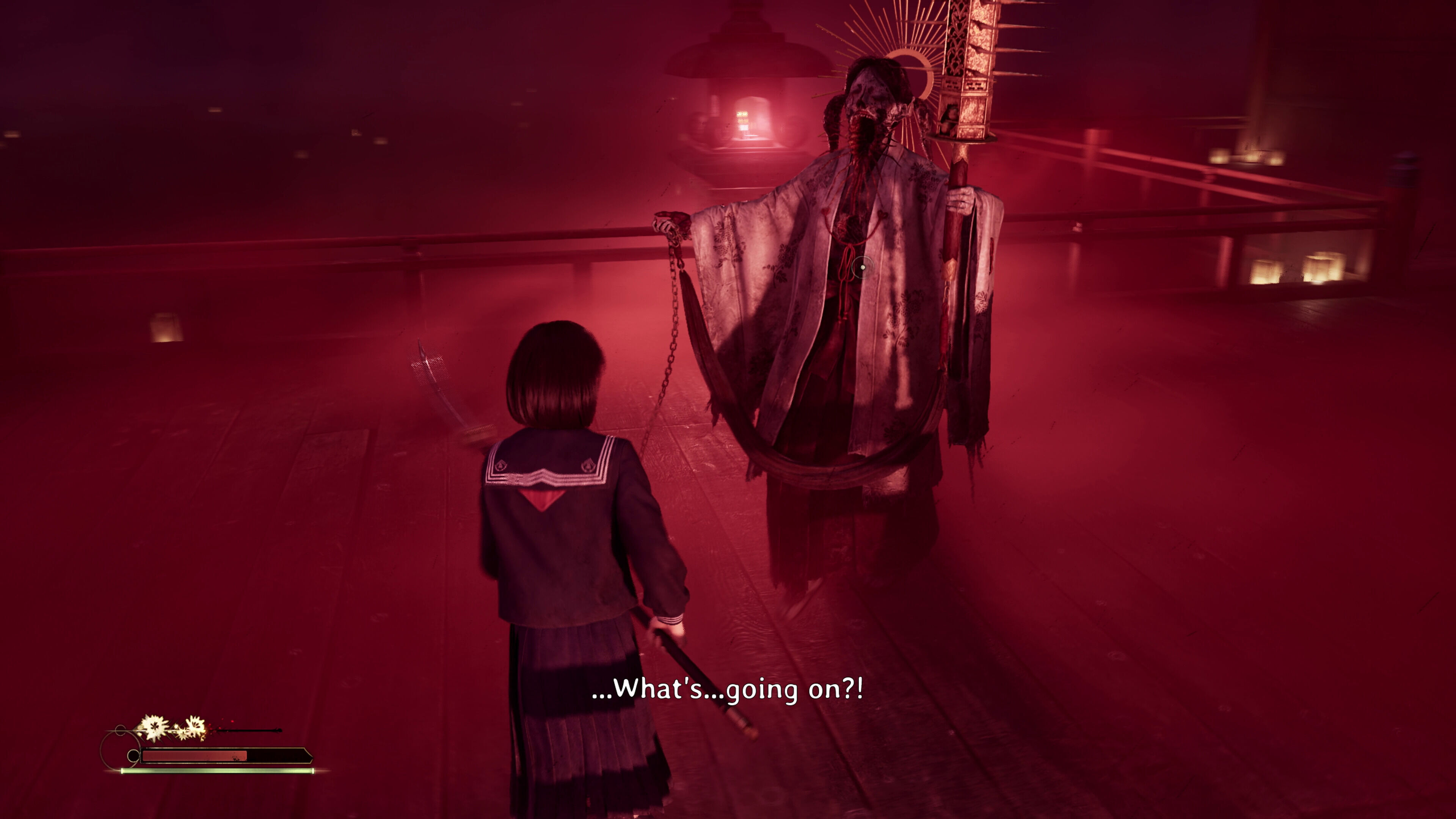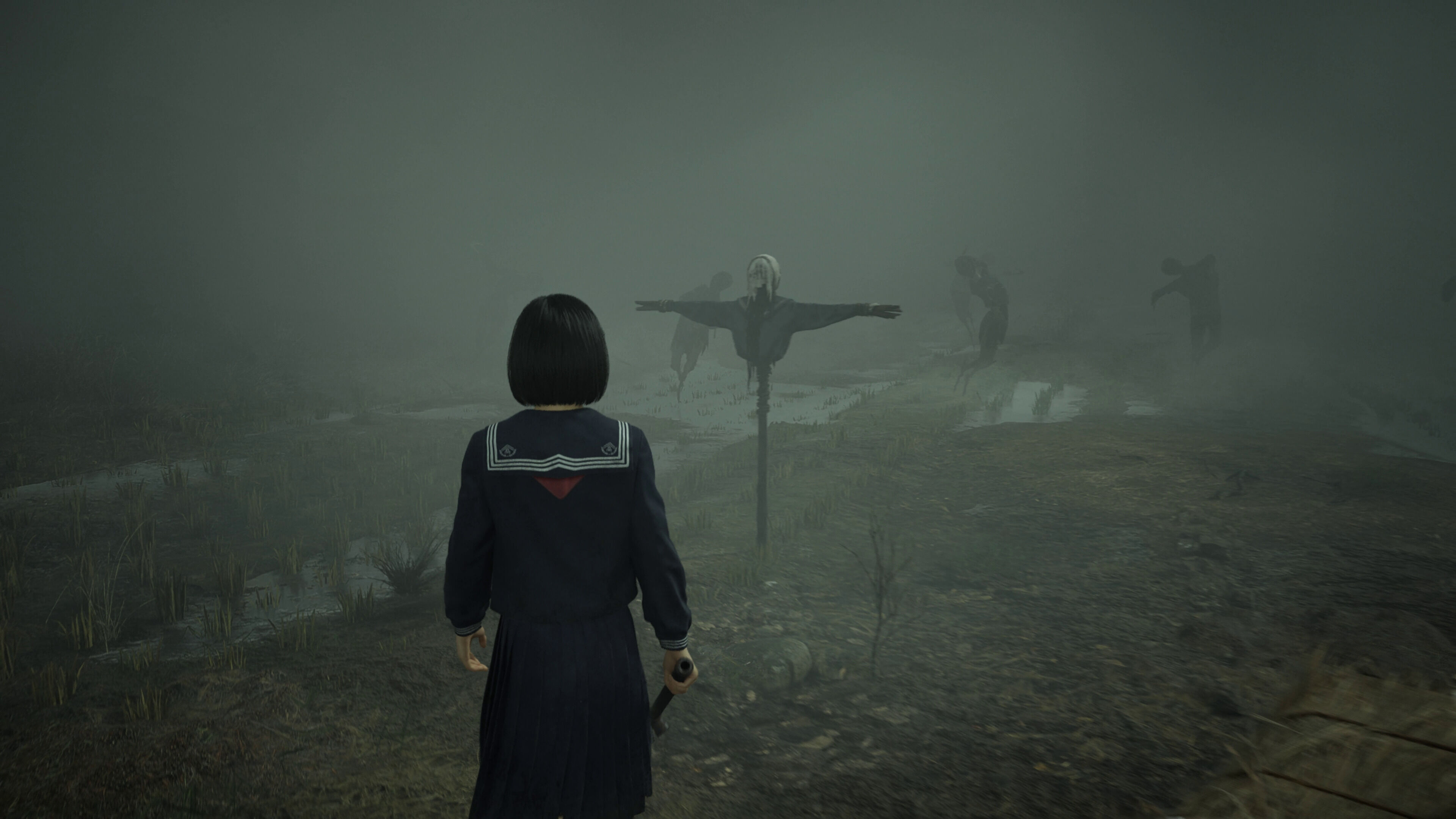 Como es habitual en la saga, Ebisugaoka es una mitad de la experiencia. La otra es un mundo de pesadilla que, al contrario que en otros Silent Hill, no es una versión retorcida y oxidada del real, sino un entorno oscuro y onírico donde recorremos templos, lagos y otros espacios habituales del folclore japonés. Allí nos esperan otros enemigos, propuestas jugables diferentes y algún personaje misterioso. Nos ha gustado este cambio de rumbo en la serie, al igual que la ambientación general. Aunque aún no hemos visto el despegue del argumento y de momento no nos hemos asustado, los temas tratados, la protagonista y sus conflictos son potentes y convencen.