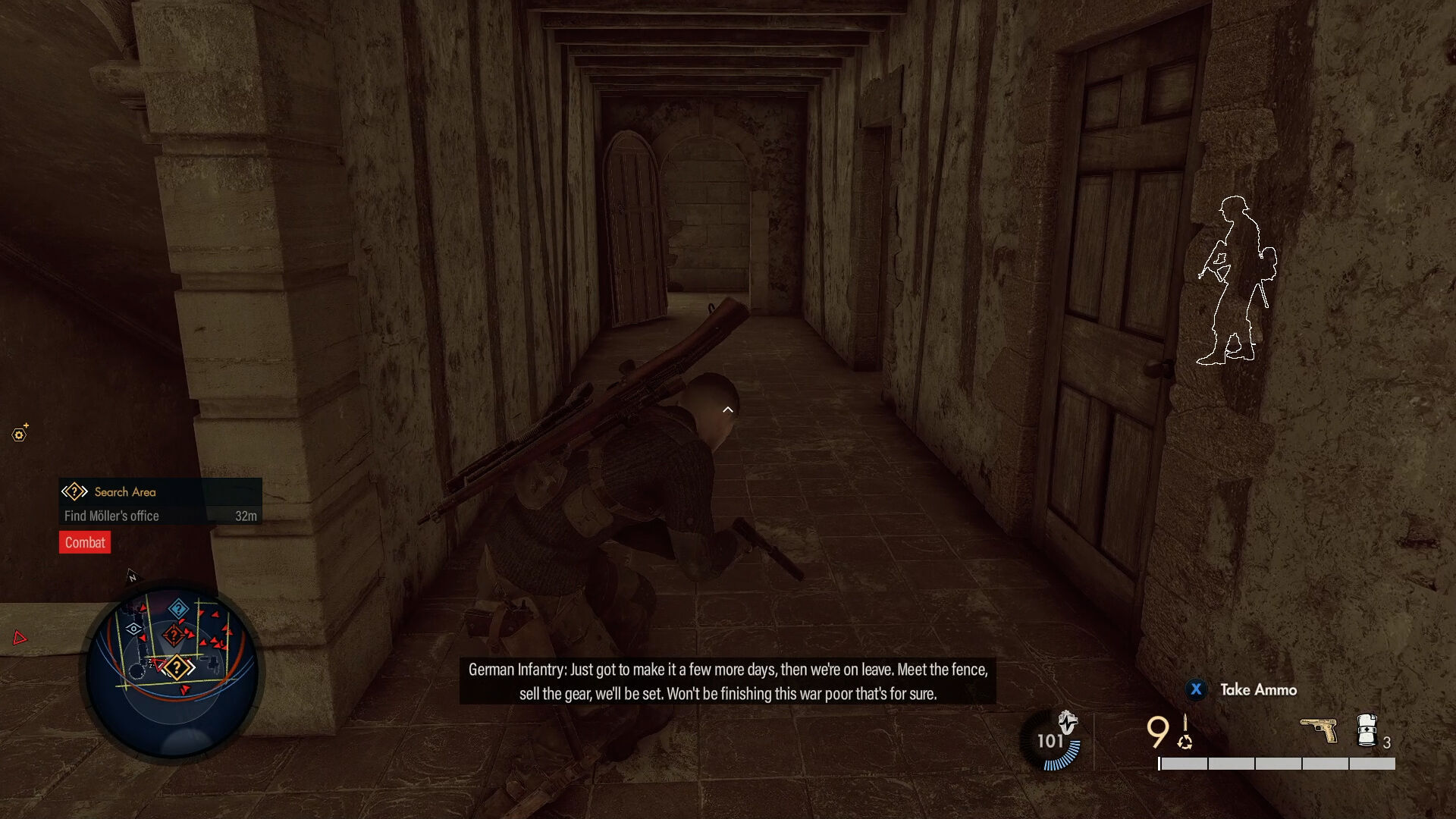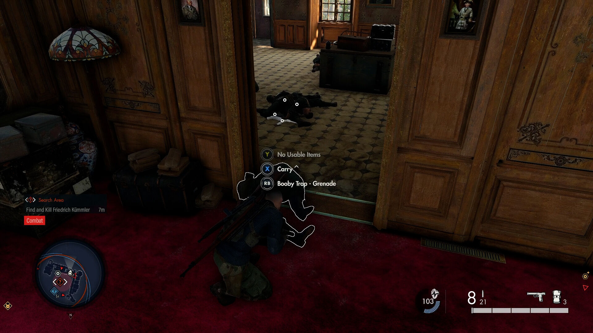Dentro de cada misión puede haber encargos que sean más sencillos de abordar con un estilo de juego u otro; en la que jugamos, para hacerse con los planes de la Operación Kraken lo óptimo era tirar de sigilo, pero para cumplir el encargo secundario de recuperar varias obras de arte robadas por los nazis era más apropiado usar ítems y elementos del escenario (barriles explosivos para explotar vehículos, sabotear generadores para hacer ruido…) para atraer a los enemigos a ciertos lugares y sacar las armas de fuego (que salvo en el sniper no brillan por su gunplay) para acabar con los que quedaban en la zona objetivo. Las fases, por cierto, están diseñadas para volver a ellas y cumplir esos objetivos secundarios, ya sea con otra build del personaje (aunque también encontramos bancos de trabajo dentro del escenario para modificar nuestro armamento) o aprovechando las nuevas zonas de entrada al nivel que hayamos encontrado en anteriores incursiones.