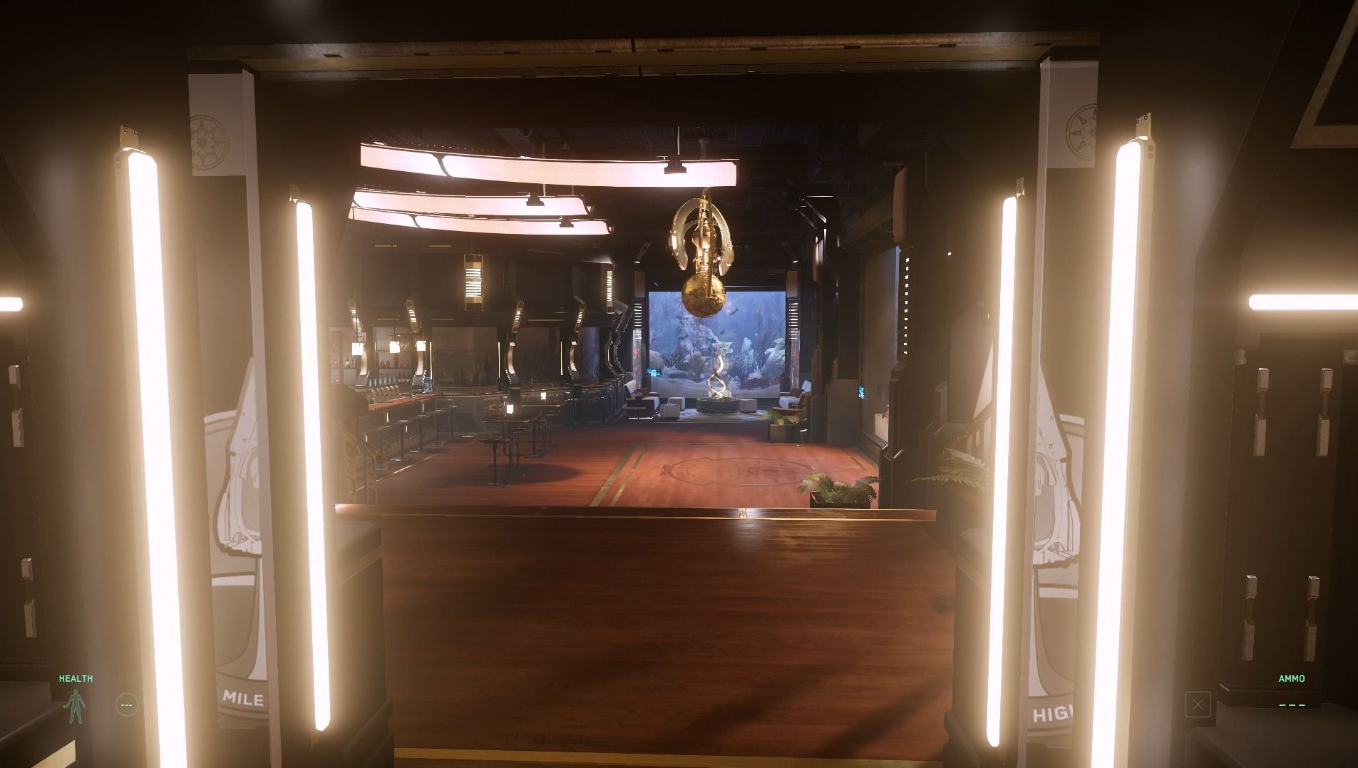 Entre las zonas por las que simplemente podremos pasear encontramos Millon Mile High Club. Este bar, con un diseño lujoso y decorado con enormes acuarios, será una de las zonas más exclusivas de Star Citizen. Otra ubicación muy interesante y que ofrece mayor interactividad es Crusader. Esta estación espacial nos otorga la posibilidad de pilotar una de nuestras naves. Para ello, simplemente tendremos que solicitarla en el puesto de mando y dirigirnos hasta el muelle indicado. En esta área también podremos completar una serie de pequeños objetivos que nos permitirán poner a prueba nuestras habilidades.