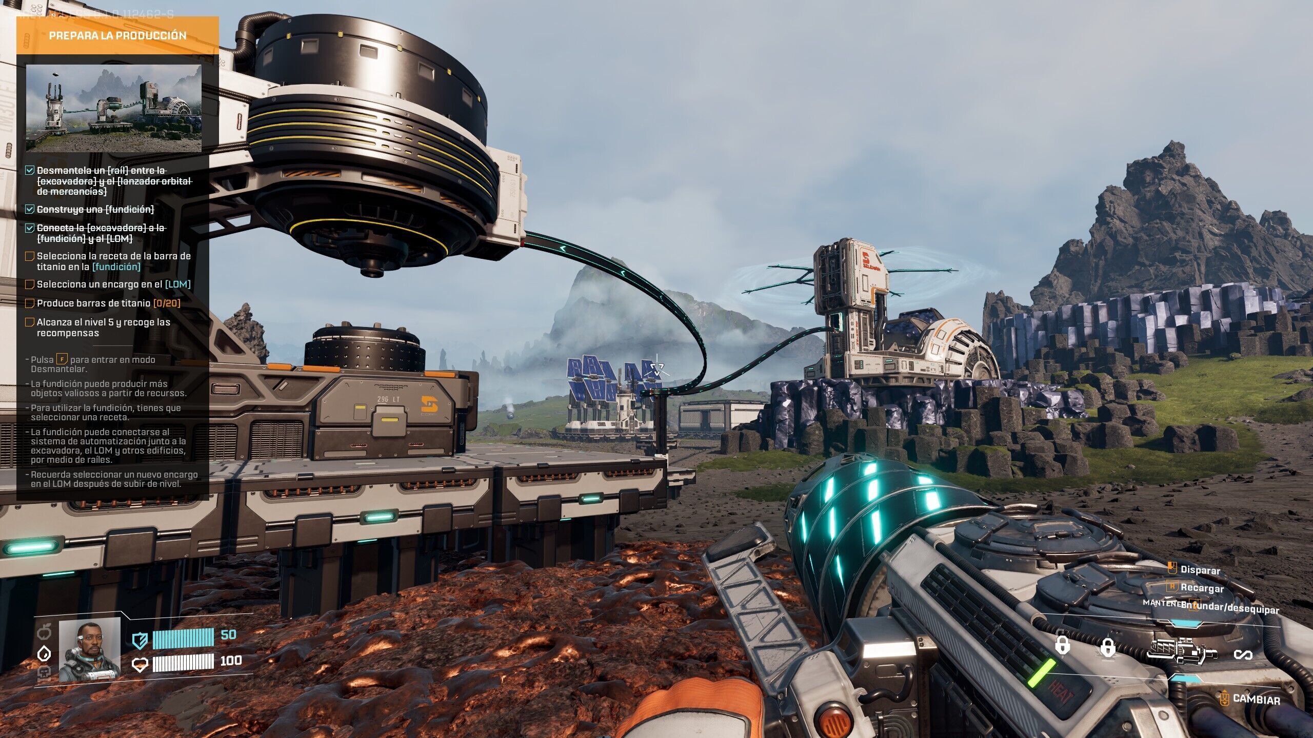 Cesados los rugidos de la tripa y la sequedad de la garganta, volvimos al enclave metálico, futurista, áspero y ajeno, en medio de la naturaleza alienígena, que empezaba a ser nuestro hogar. Comenzamos a desbloquear otras edificaciones. Una procesaba el mineral que le llevábamos. Otra, la fabricadora, hacía lo que su nombre indica: crear tubos de metal, paneles y otros objetos que, al menos de momento, no son para nosotros, sino para enviarlos a la Tierra mediante las lanzaderas, que ya eran varias.