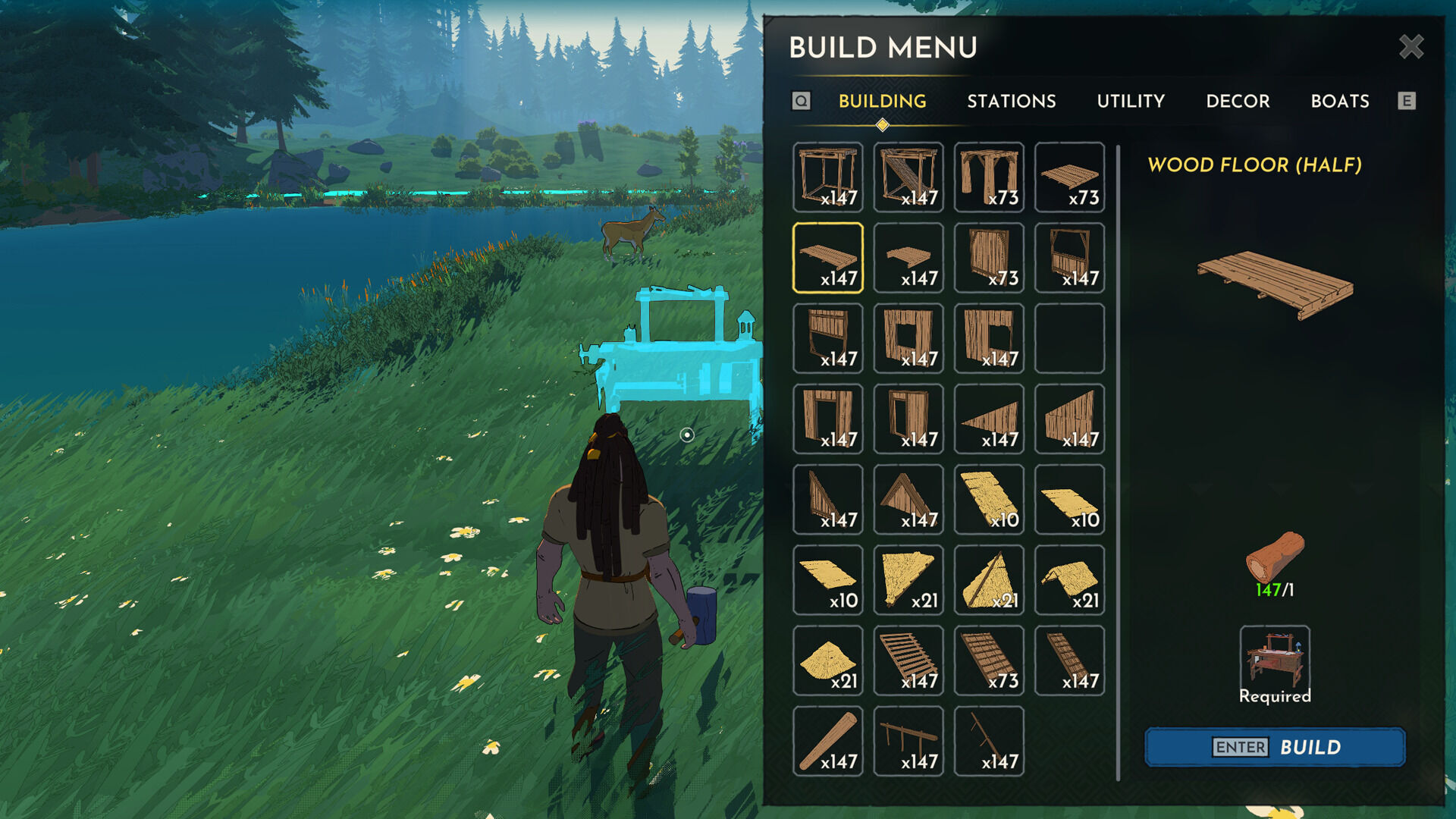 Para protegerse de esos fenómenos, además de los monstruos y otros peligros, habrá que construir, fabricar y mejorar nuestro equipamiento. Habrá que establecer un hogar. Si bien los creadores del juego insistieron en que el sistema de construcción aún está lejos de donde quieren llegar, lo cierto es que ya era intuitivo, ágil y eficaz: con unos pocos clics creamos una pequeña cabaña con tejado puntiagudo (con tres elementos diferentes que se juntaban sin errores como un imán), dejando uno de los lados abiertos para poner una mesa, un banco y otras decoraciones.