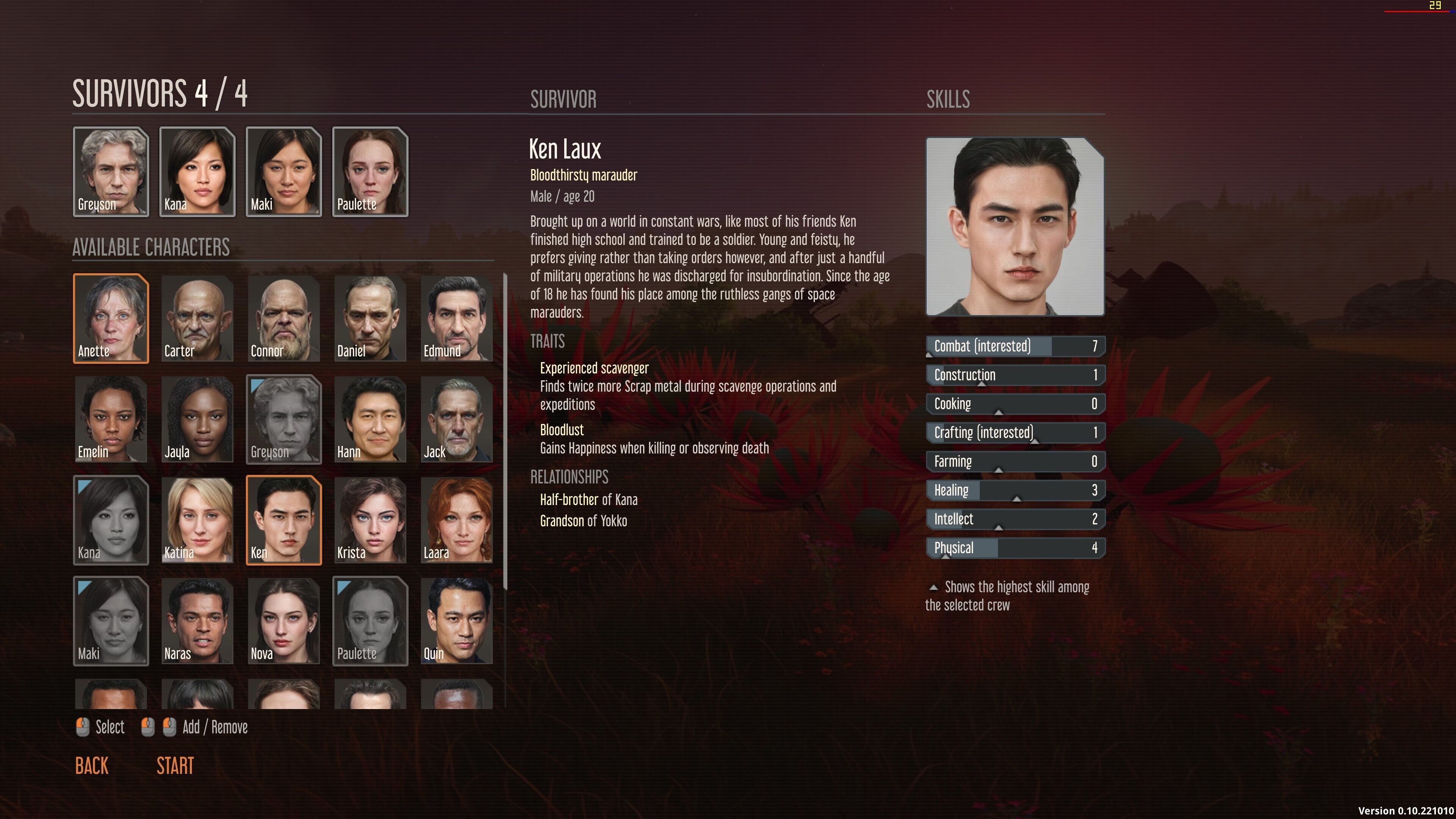 De hecho, antes de comenzar con la partida debemos de formar nuestro grupo de supervivientes y empezar aquí a tomar decisiones, ya que tenemos que buscar un conjunto equilibrado si queremos sobrevivir, teniendo una amplia lista de personajes cada uno con sus propias habilidades, fortalezas y debilidades.