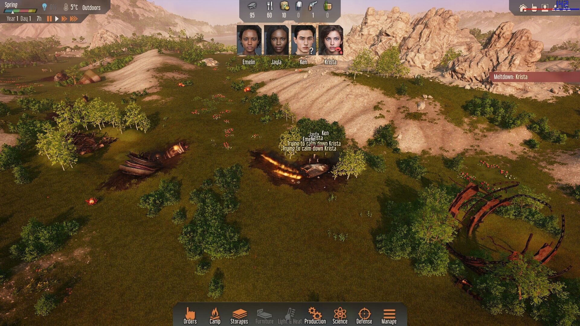 Una vez elegimos a nuestros supervivientes podemos comenzar la partida viendo cómo nuestra nave se estrella en un planeta totalmente desconocido. Dependiendo de la dificultad inicial tras pegarnos el castañazo tenemos de base una serie de recursos diferentes que podemos recuperar de la nave y, a partir de este momento, nuestra tarea será la de sobrevivir.