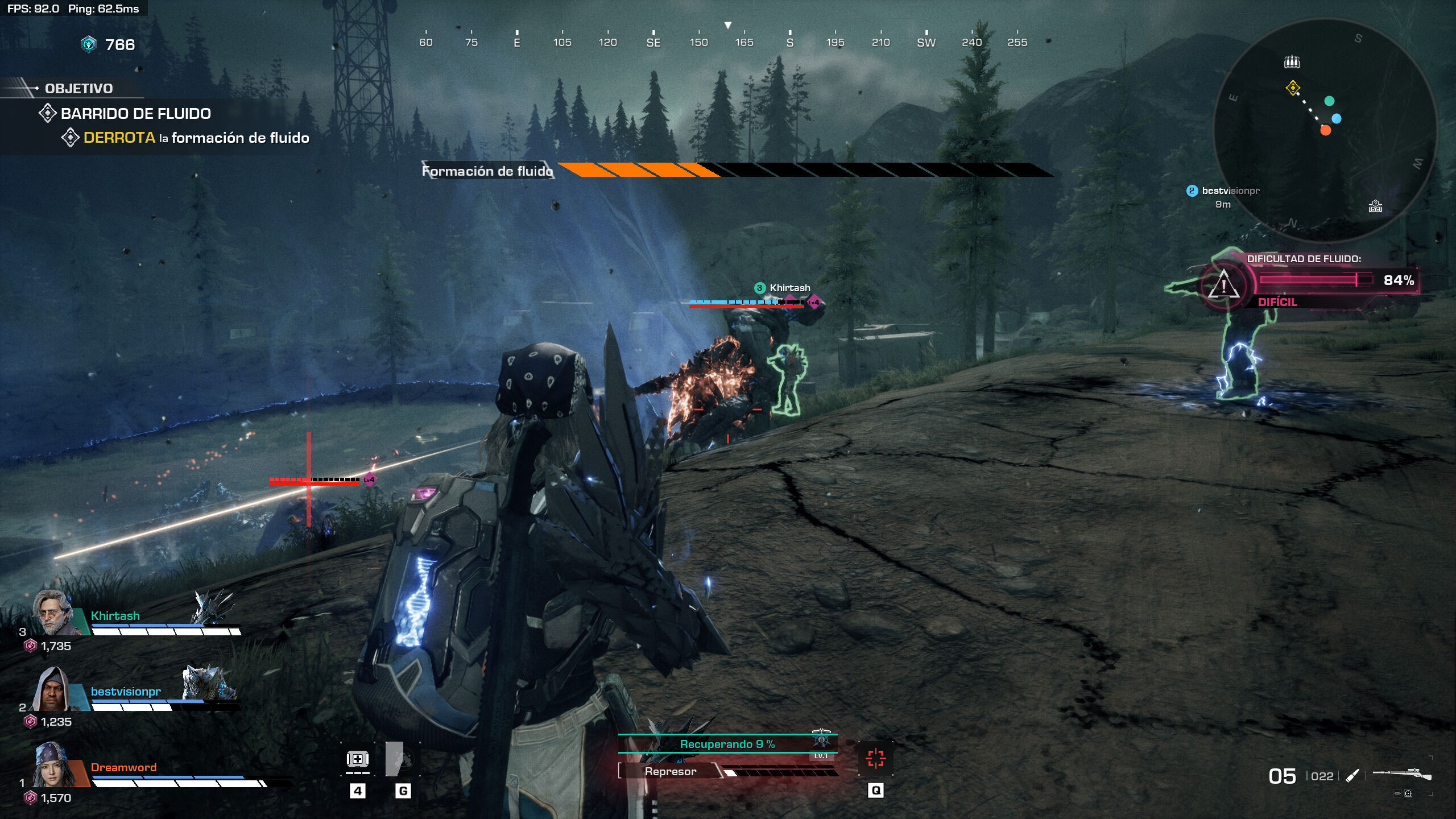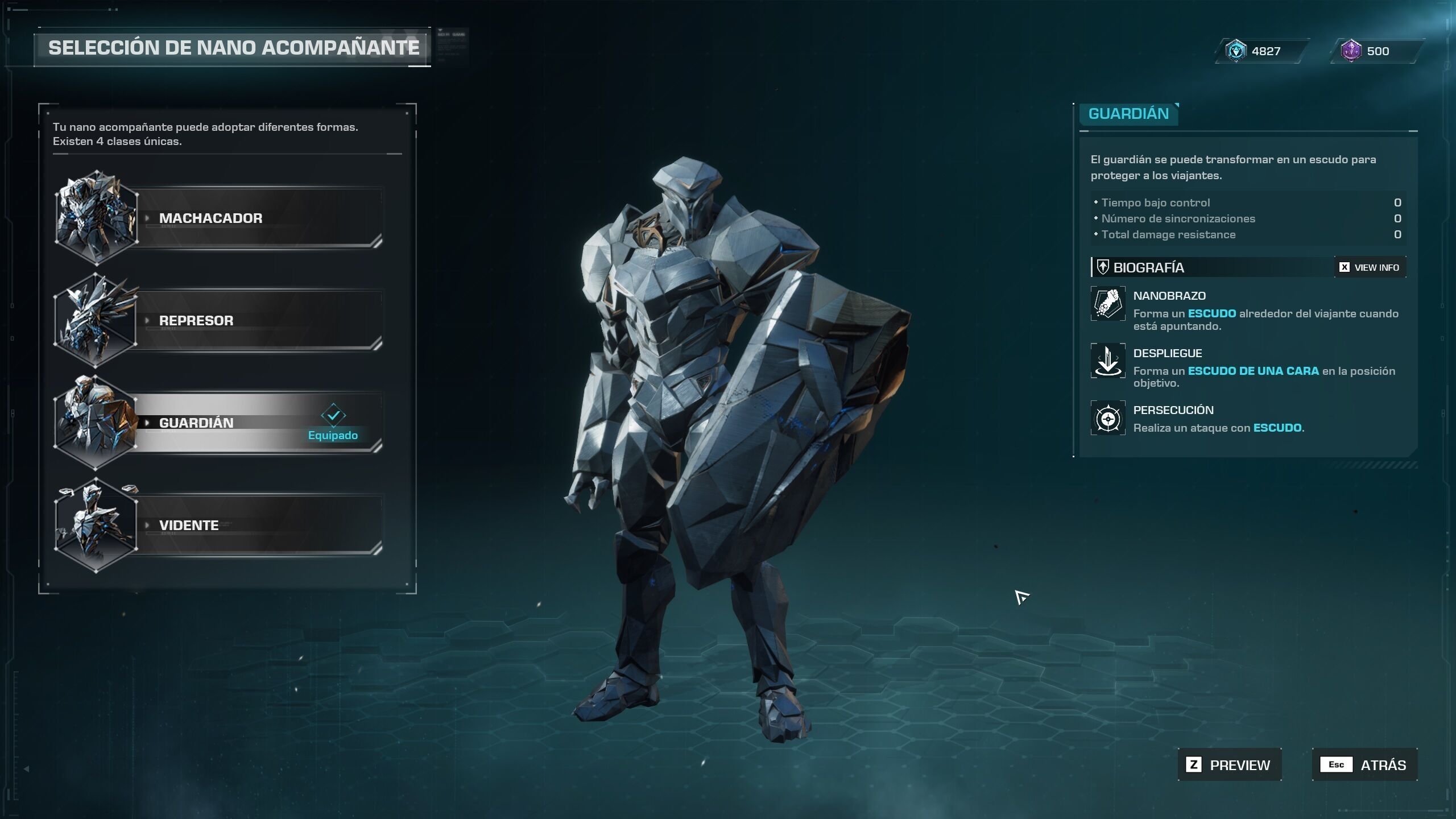 Sin embargo, al terminar con el tutorial se nos explicaba como en realidad podemos escoger entre varios cazarrecompensas diferentes (con sus propias habilidades cada uno como podéis suponer) y después elegir entre cuatro Nanos distintos, cada uno con sus propias características, pudiendo hacer combinaciones bastante interesantes entre la clase de nuestro cazarrecompensas y el Nano que le acompaña. Po ejemplo podemos seleccionar una clase enfocada en la medicina y acompañarla de un Nano que sirva como tanque para repeler los golpes mientras curamos a un compañero u optar por otro que crea señuelos y resalta los puntos débiles del enemigo para que nuestro cazarrecompensas sea mucho más ofensivo.