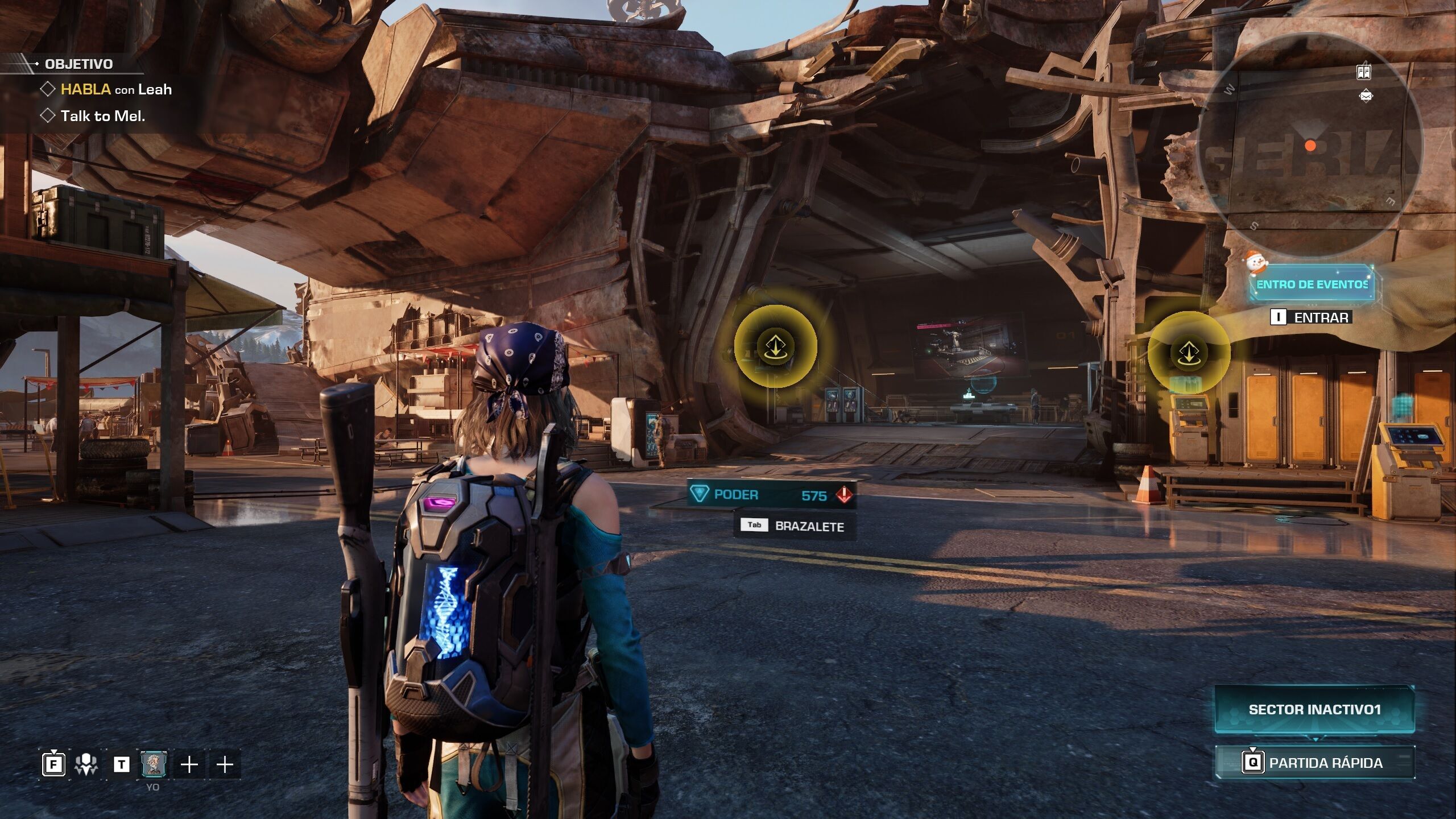 La elección de nuestro cazarrecompensas, del Nano que nos acompaña y del armamento, mejoras y todos los detalles que podéis imaginar la hacemos en un HUB llamado Heaven, en el que también aprendemos parte de la historia de SYNCED y en el que podemos también seleccionar cómo desplegarnos en el campo de batalla.