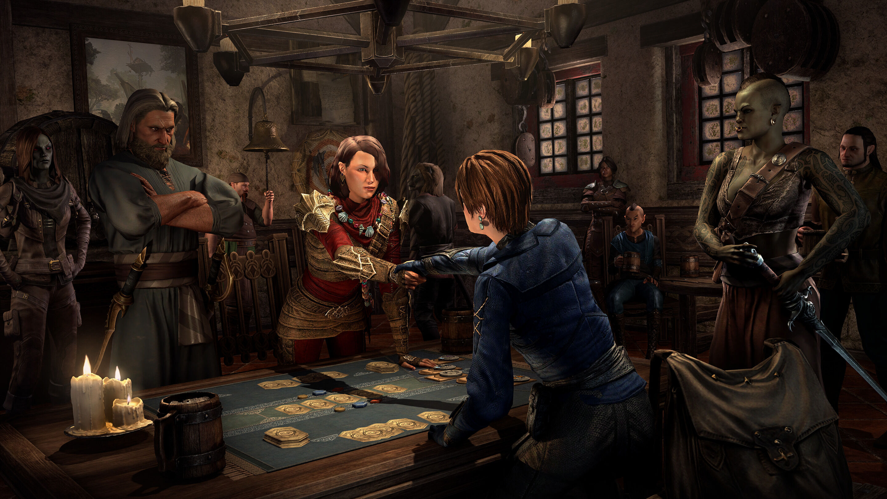 Otro de los puntos importantes para Bethesda con este nuevo capítulo es Tales of Tribute, un juego de cartas coleccionables integrado dentro de este capítulo que parece ser un nuevo intento de Bethesda de triunfar con este tipo de juegos después del lanzamiento de The Elder Scrolls: Legends que paralizó su desarrollo en 2019.