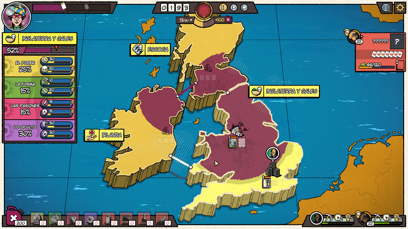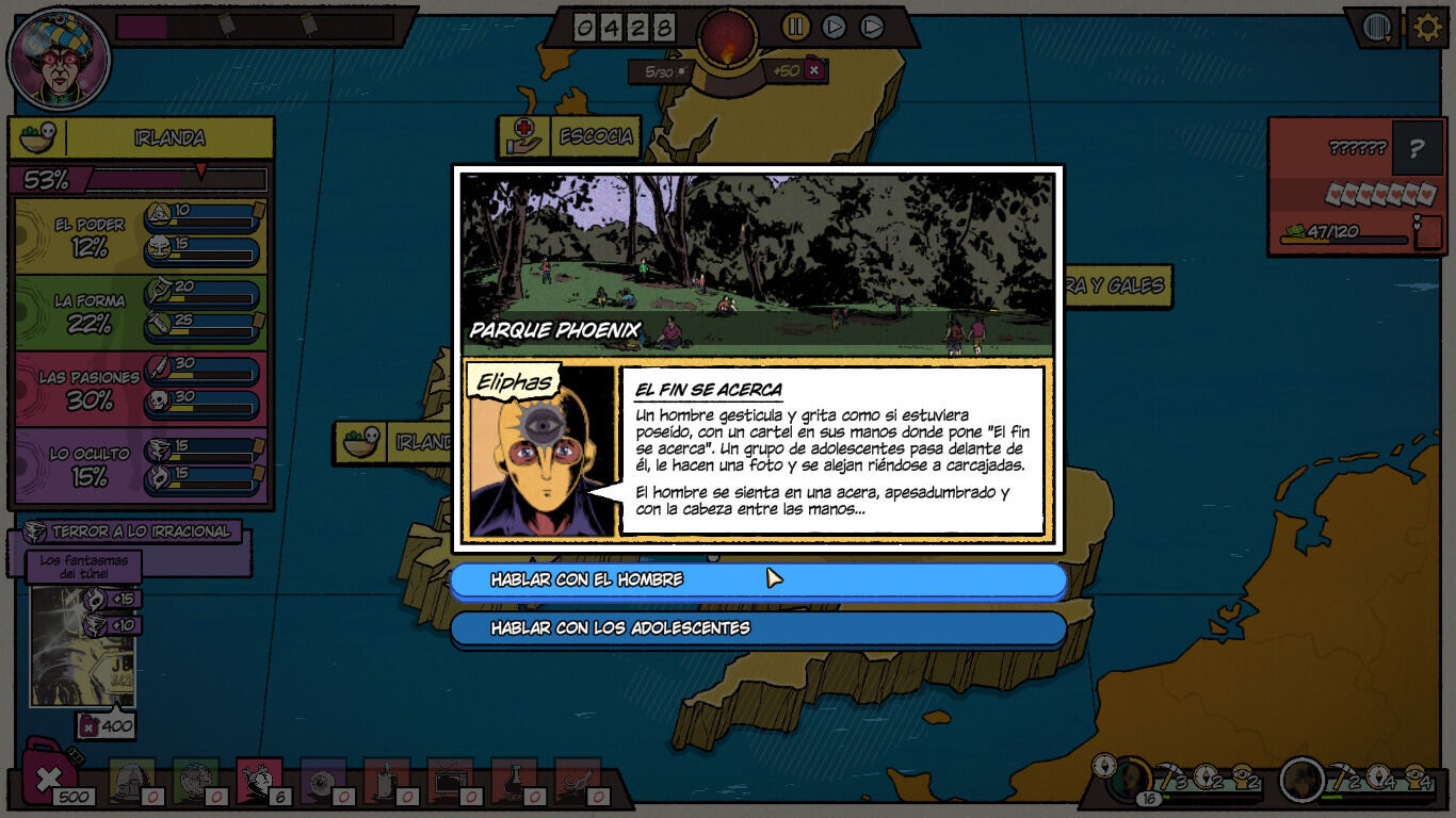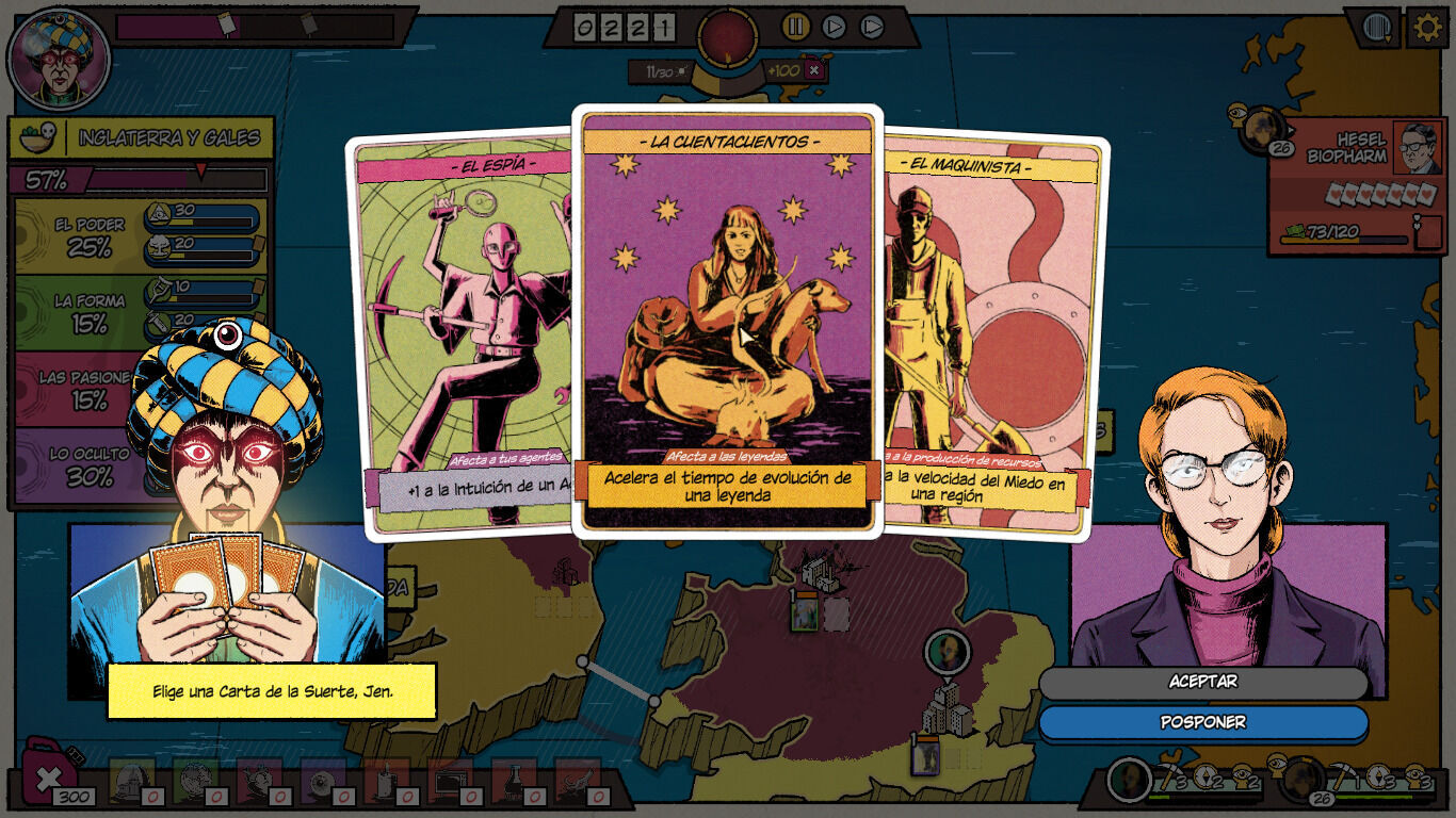 Como en todo buen juego de estrategia, tardamos unas cuantas partidas en pillarle el truco a The Fabulous Fear Machine: nuestro objetivo básico es expandir bulos por una región para que el miedo sea tal que nuestro mensaje populista cale entre los ciudadanos dándonos ese objetivo que tanto queremos; si logramos difundir dichos mensajes, la máquina del miedo nos obsequiará con el deseo que le hayamos pedido, aunque el precio a pagar es que la máquina (y quienes están detrás de ella) pasarán a conocer todos nuestros secretos del pasado.