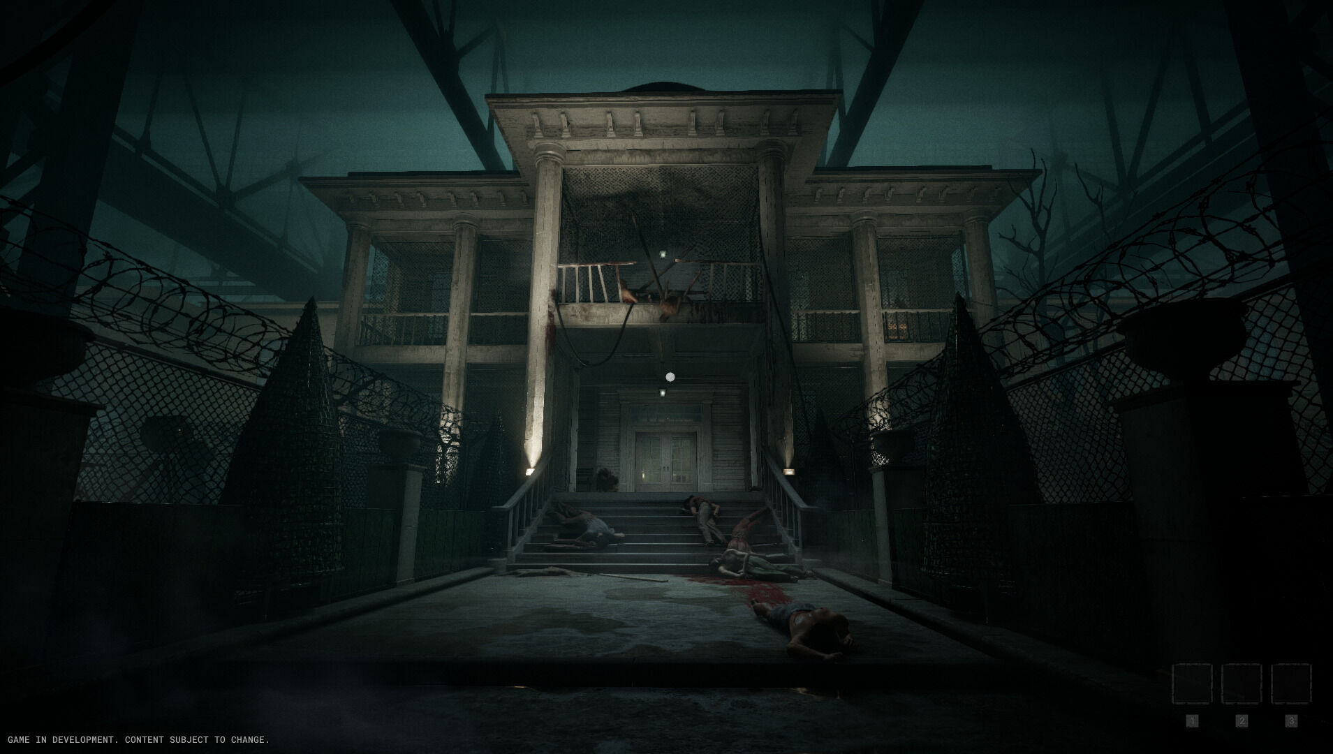 The Outlast Trials posee las características que veíamos en las dos entregas anteriores, pero de forma corregida y aumentada. Nuestra preciada cámara de vídeo son ahora unas gafas de visión nocturna que necesitaremos para ver en la oscuridad. Habrá que explorar los diferentes escenarios (nosotros solamente hemos podido probar uno hasta la fecha) y reunir información para poder completar los diferentes objetivos. Para conseguir esos datos, tendremos hasta que rebuscar en cadáveres, por lo que el gore y la violencia continúan siendo uno de los platos principales del título.